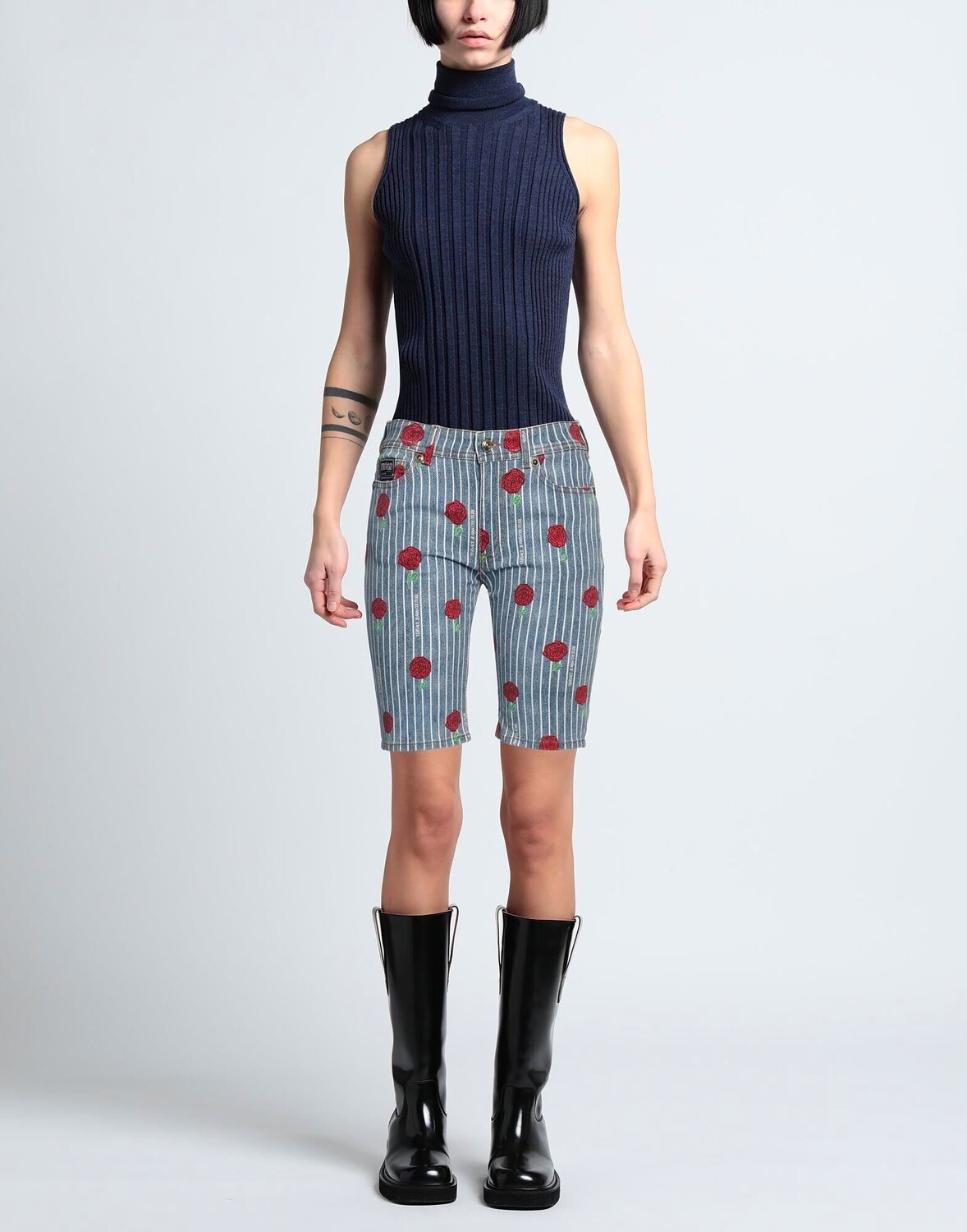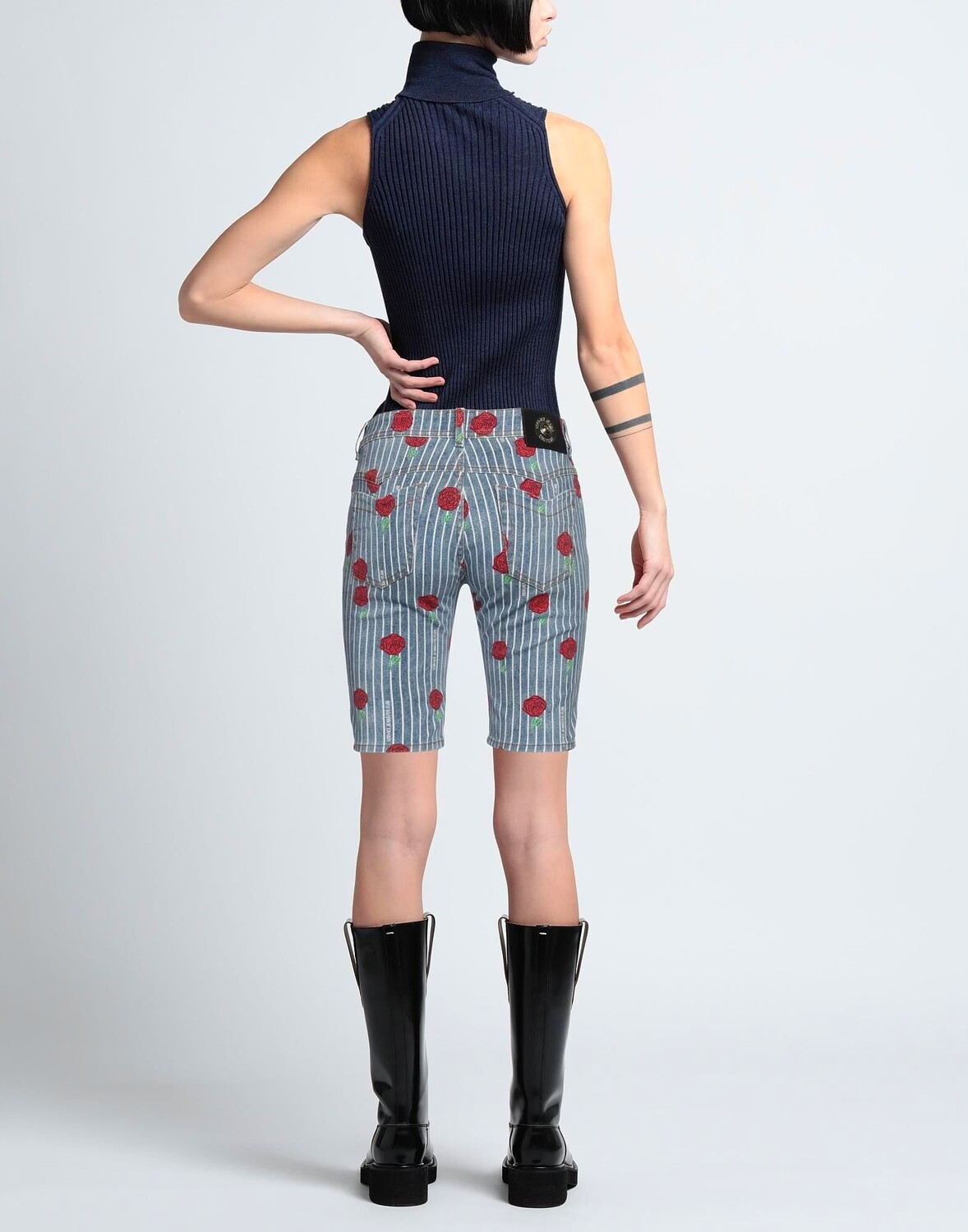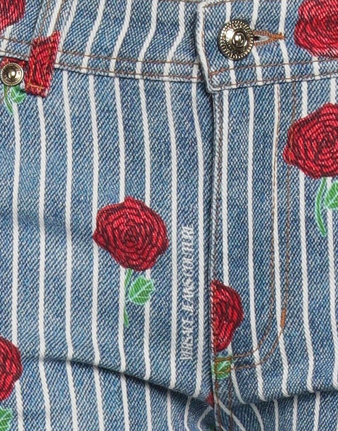 Деним, логотип бренда, цветочный принт, в полоску, средняя потертость, средняя посадка, шлевки для ремня, без карманов, стрейч, малый размер этой марки, шорты