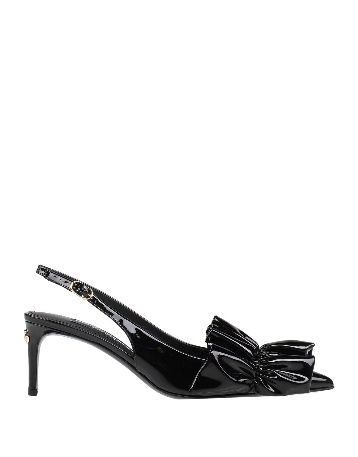 Кожа, ткань с покрытием, эффект лака, оборки, логотип бренда, одноцветное изделие, кожаная подкладка, застежка-пряжка, узкий носок, каблук-шпилька, кожаная подошва, содержит нетекстильные части животного происхождения, туфли-лодочки с пяткой