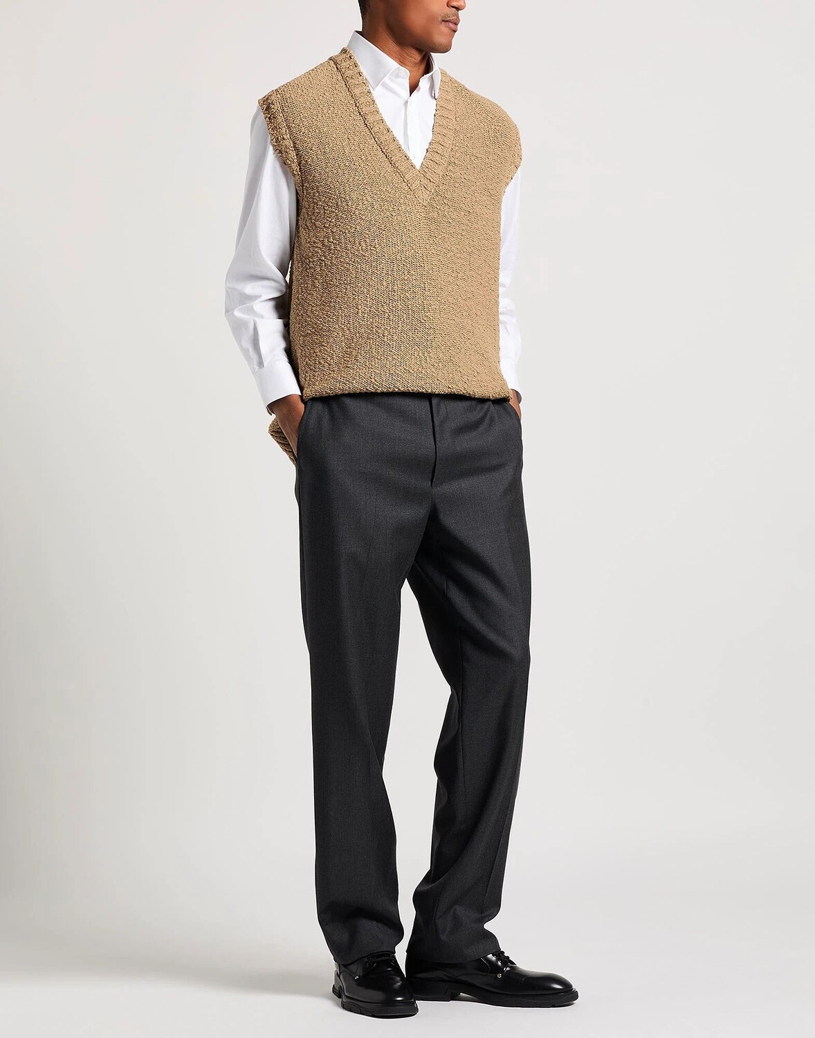 Трикотаж, средней плотности, без аппликаций, одноцветное изделие, V-образный вырез, без рукавов, химчистка, нельзя отбеливать, нельзя сушить в стиральной машине, предназначен для свободного кроя