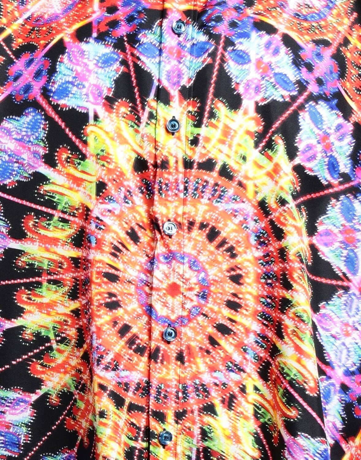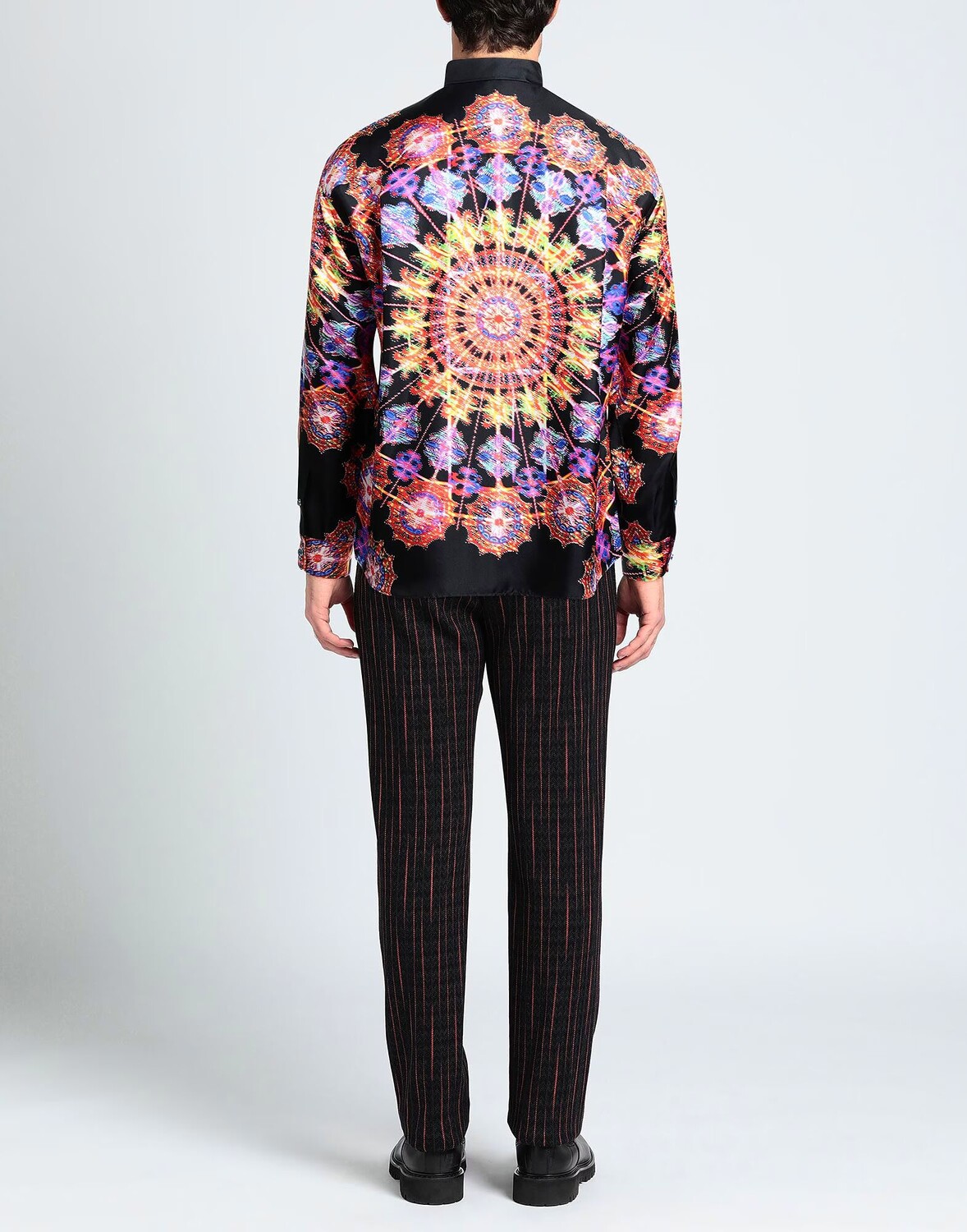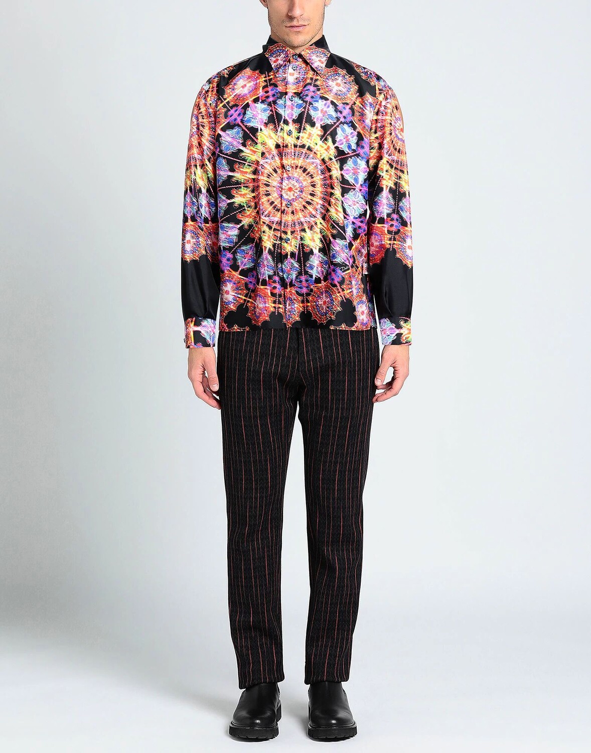 Атлас, логотип бренда, разноцветный узор, классический вырез горловины, длинные рукава, манжеты на пуговицах, застежка на пуговицы, без карманов, большой размер