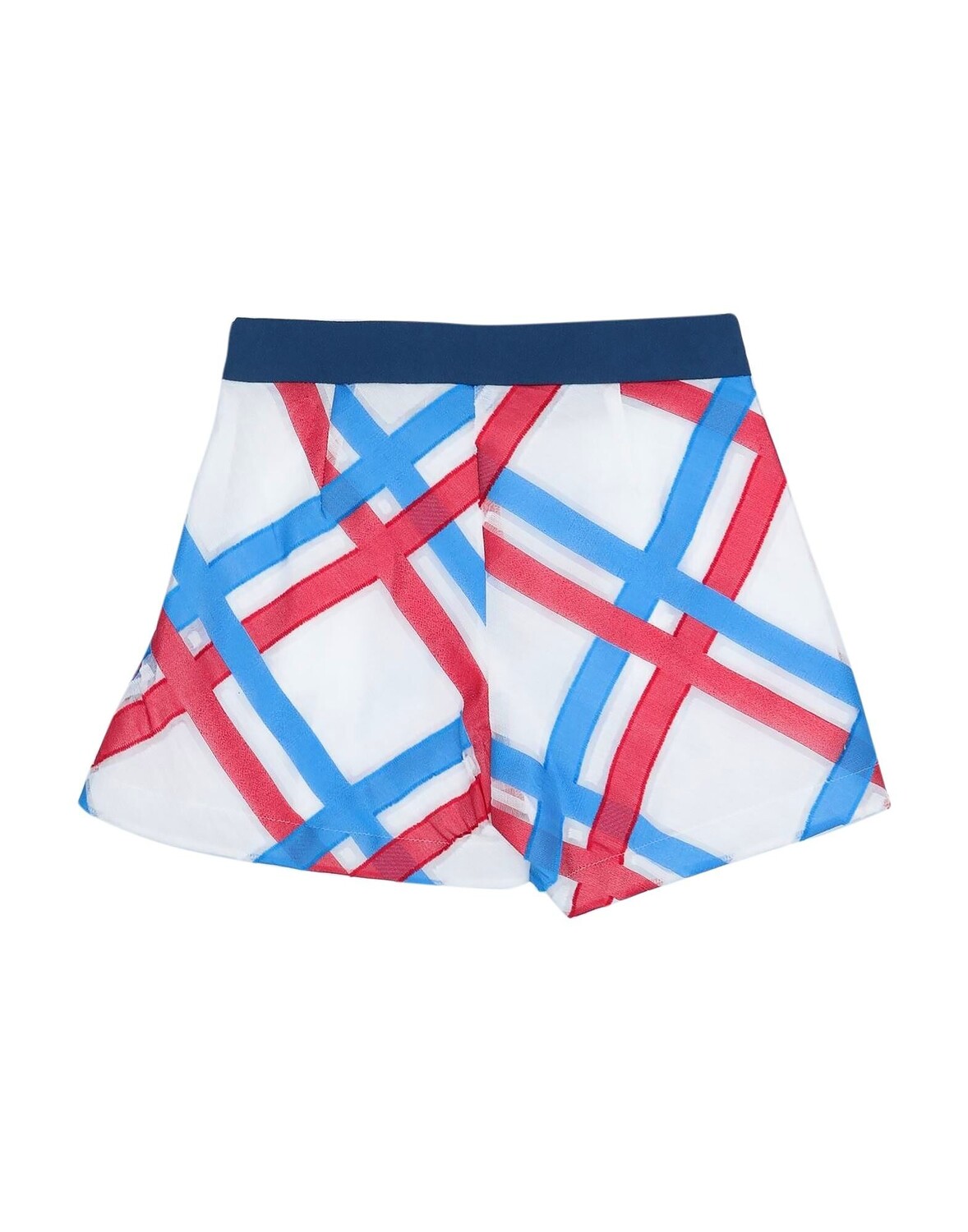 Креп, органза, без аппликаций, узор «тартан», средняя посадка, стандартный крой, застежка-молния, множество карманов, внутренние шорты, нельзя стирать, подлежит химчистке, нельзя отбеливать, нельзя сушить в стиральной машине, гладить при температуре не выше 110°C