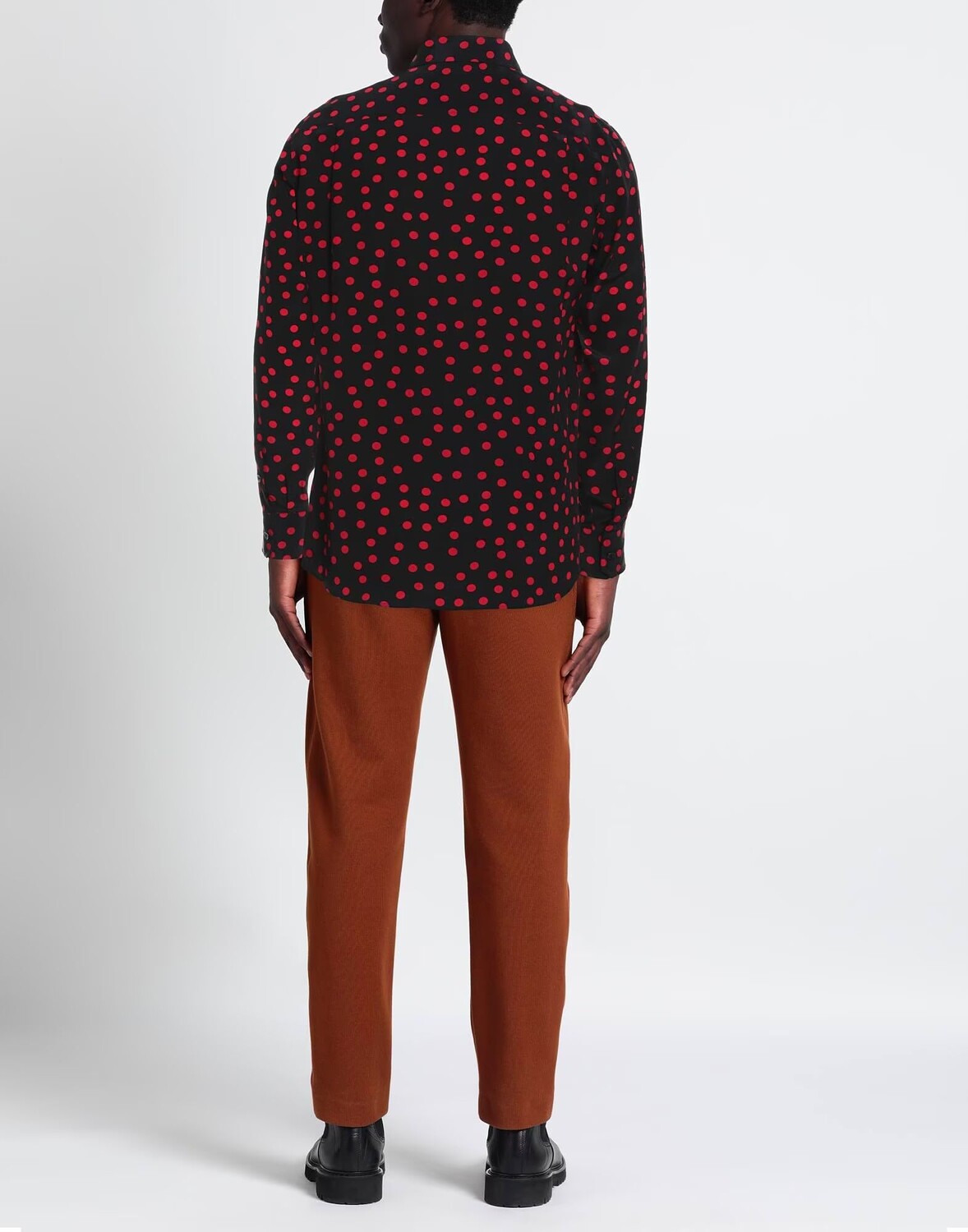 Атлас, без аппликаций, в горошек, вырез классический, рукава длинные, манжеты на пуговицах, застежка на пуговицы, без карманов, большой размер