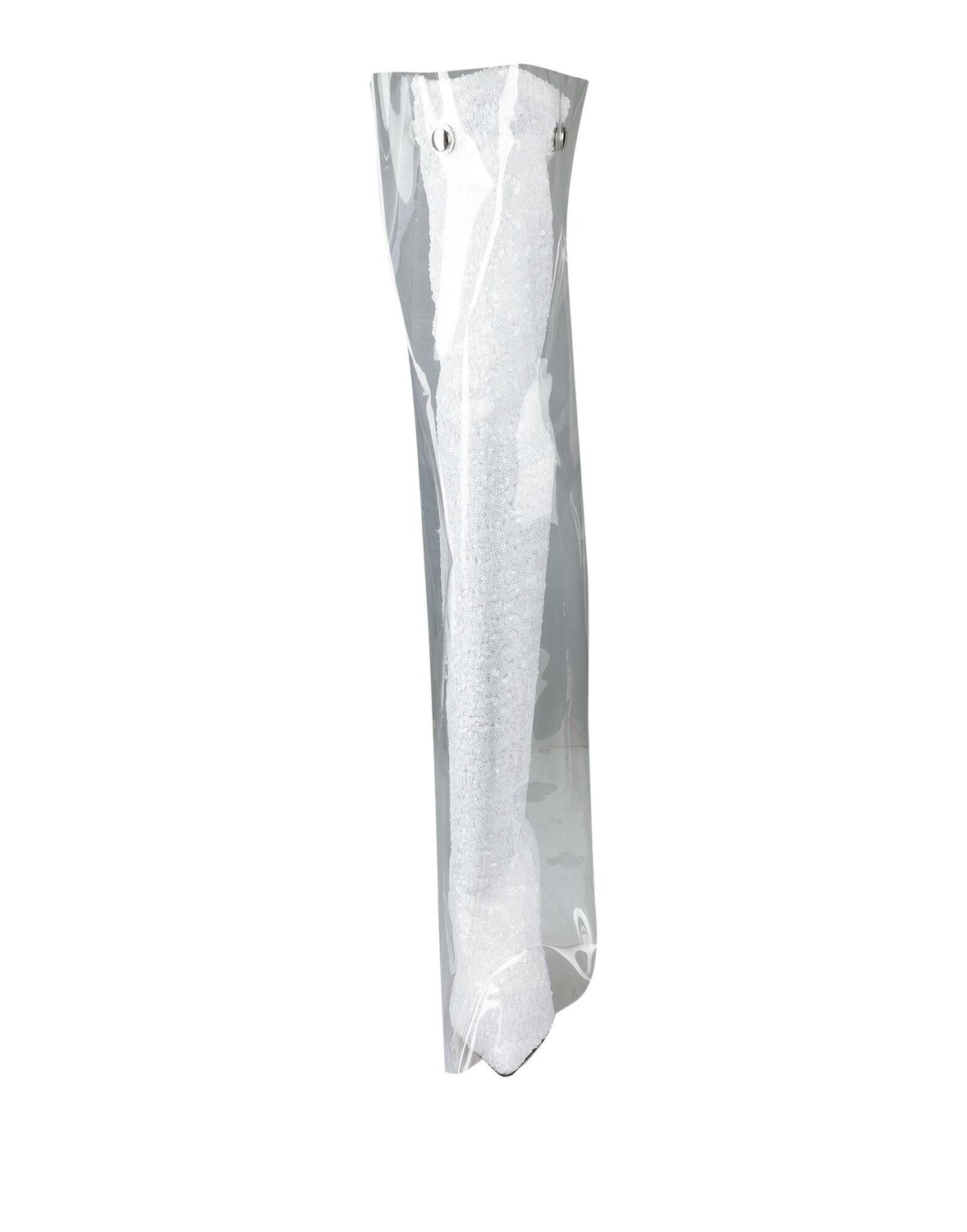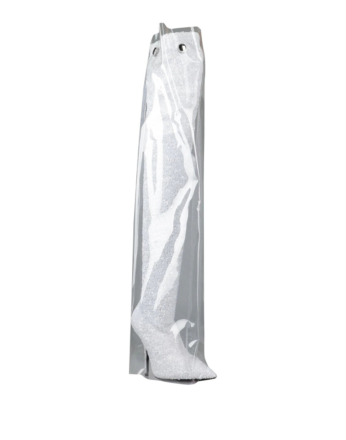 Каучук, тюль, пайетки, одноцветное изделие, кожаная подкладка, эластичные вставки, узкий носок, острый каблук, обтянутый каблук, кожано-резиновая подошва, содержит нетекстильные части животного происхождения, модель ботфортов