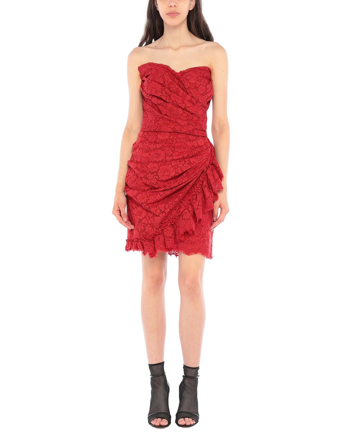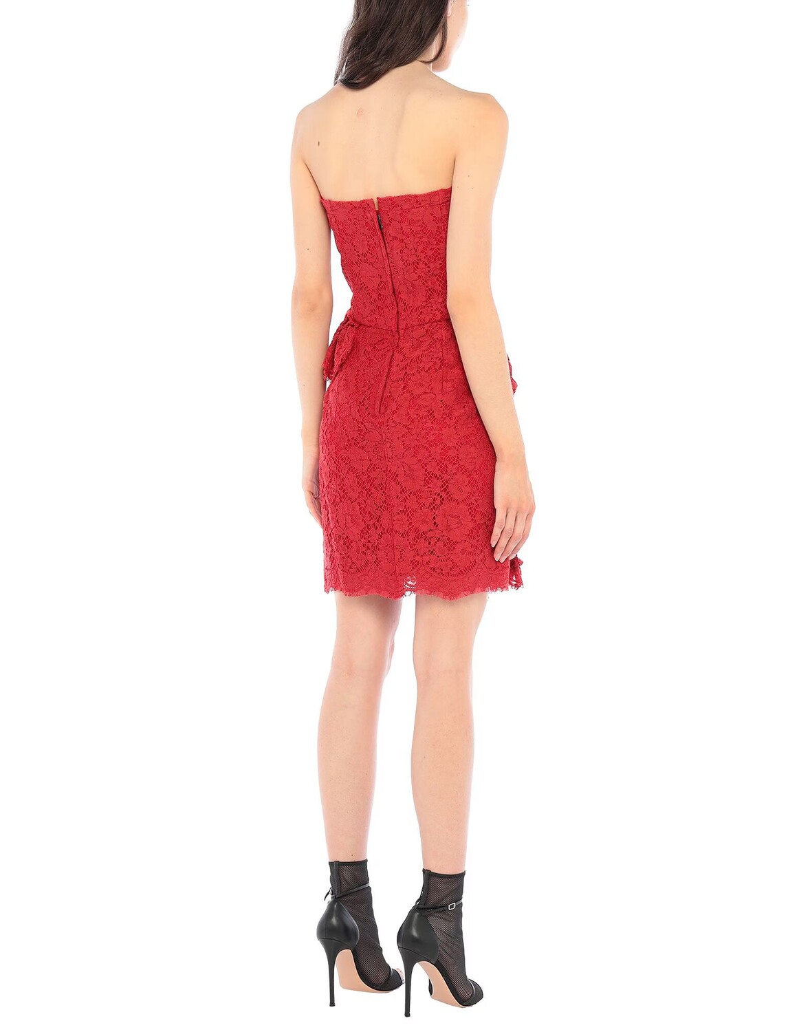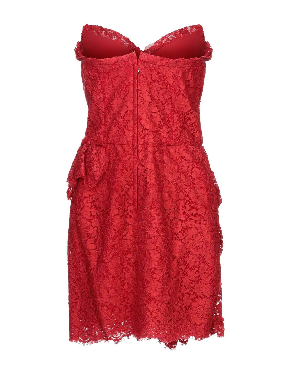 Кружево, оборки, драпированная отделка, однотонное изделие, глубокий вырез, без рукавов, без карманов, застежка сзади, на крючках, молния, внутри с кармашками