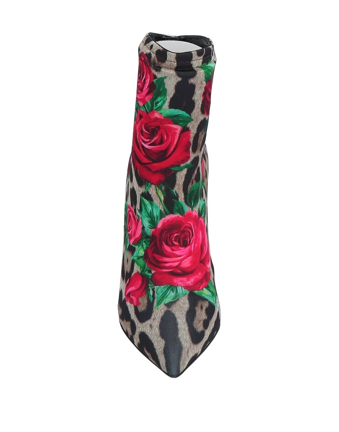 Трикотаж, без аппликаций, леопардовый принт, подкладка из кожи, острый носок, каблук-шип, обтянутый каблук, кожаная подошва, содержит нетекстильные части животного происхождения, ботильоны-носки