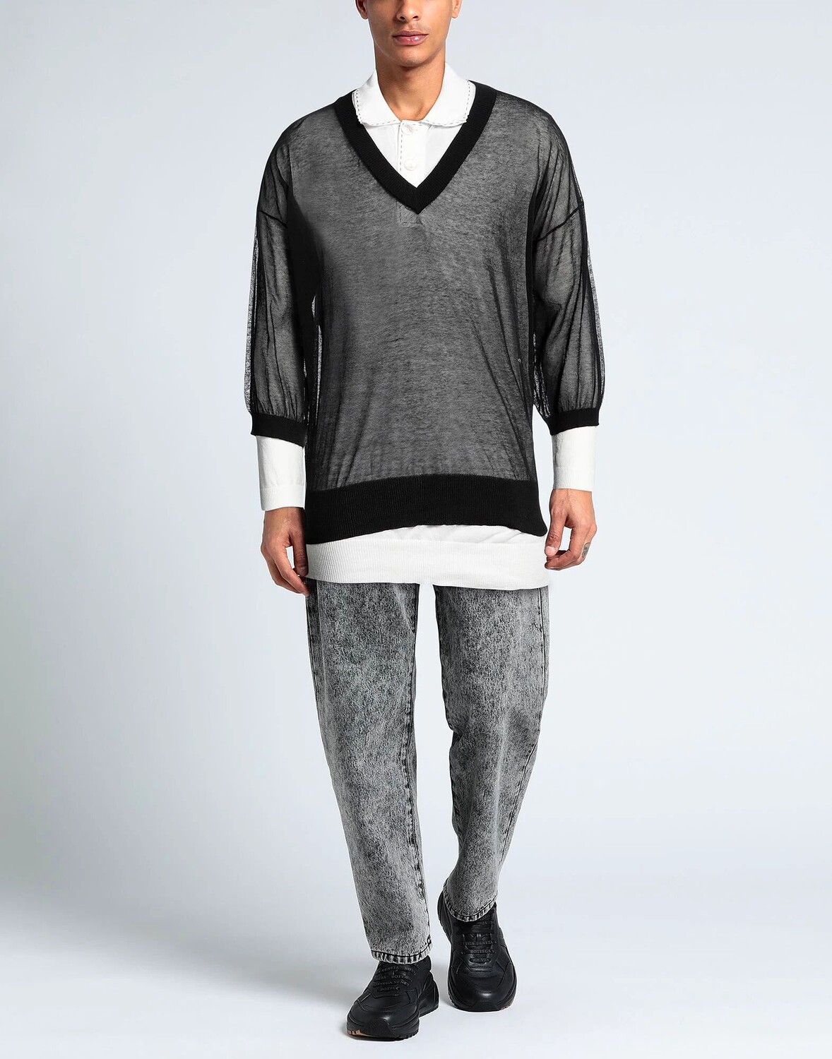 Трикотаж, легкая вязка, без аппликаций, двухцветный, воротник-поло, рукава длинные, застежка на пуговицы, без карманов, большой размер.