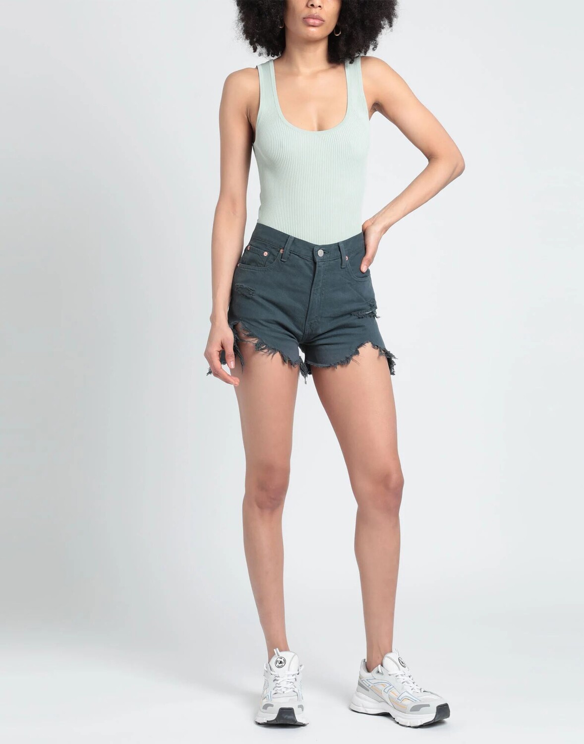 Джинсовая ткань, логотип бренда, двухцветная ткань, цветная расцветка, множество карманов, шорты