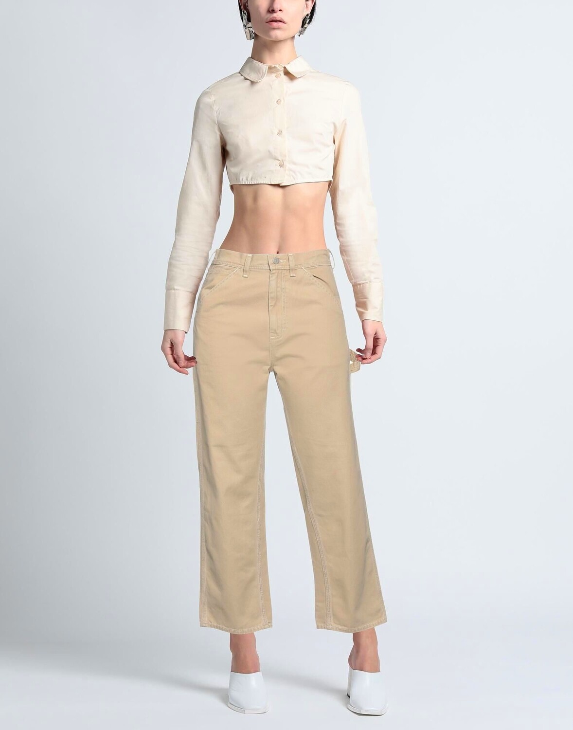Габардин, логотип бренда, одноцветное изделие, завышенная талия, прямые брючины, классический крой, застежка-молния, застежка на пуговицы, множество карманов, брюки