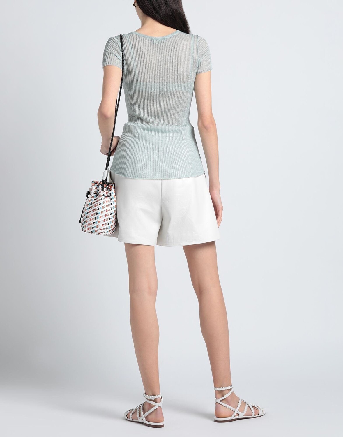 Трикотаж, ламе, легкая вязка, без аппликаций, одноцветное изделие, V-образный вырез, короткие рукава, без карманов