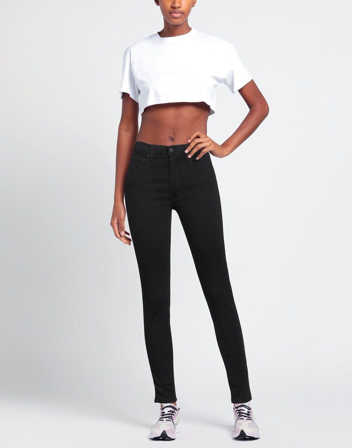 Тканый материал, логотип бренда, одноцветное изделие, цветная стирка, высокая талия, шлевки для ремня, прямые брючины, стандартная посадка, застежка-молния, 1 пуговица, множество карманов, эластичный, машинная стирка, нельзя сушить в стиральной машине, не отбеливать, 5 карманов