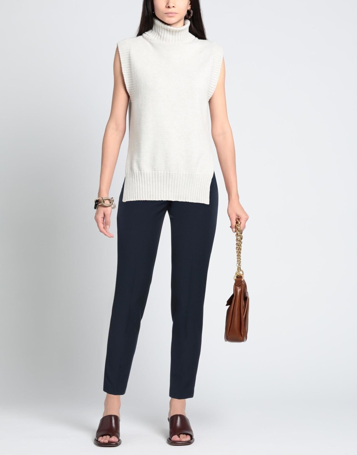 Креп, без аппликаций, одноцветное изделие, средняя посадка, зауженная брючина, классический крой, застежка-молния, 1 пуговица, множество карманов, стрейч, брюки чинос