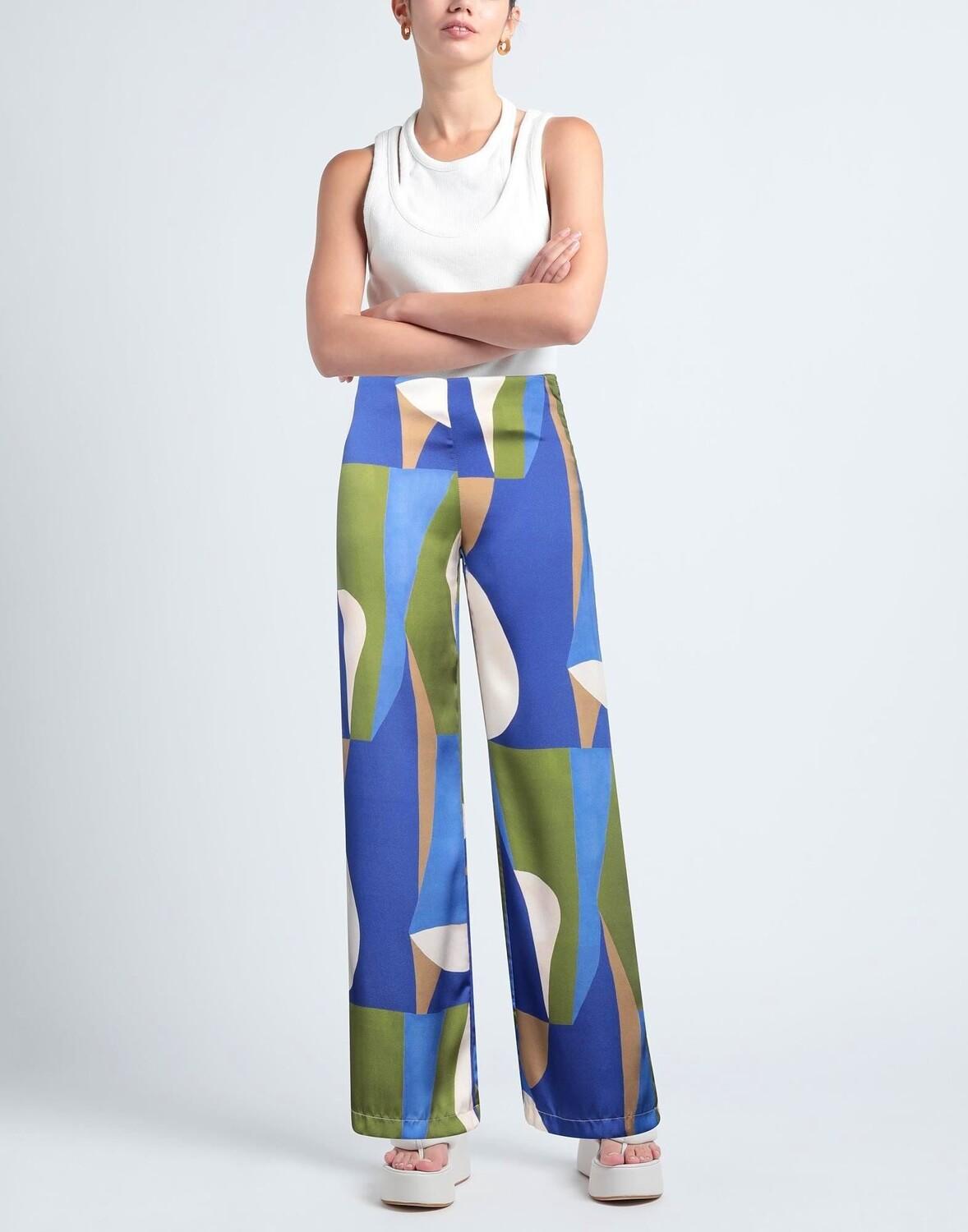 Сатин, без аппликаций, разноцветный рисунок, завышенная талия, широкая штанина, стандартный крой, застежка-молния, без карманов, брюки