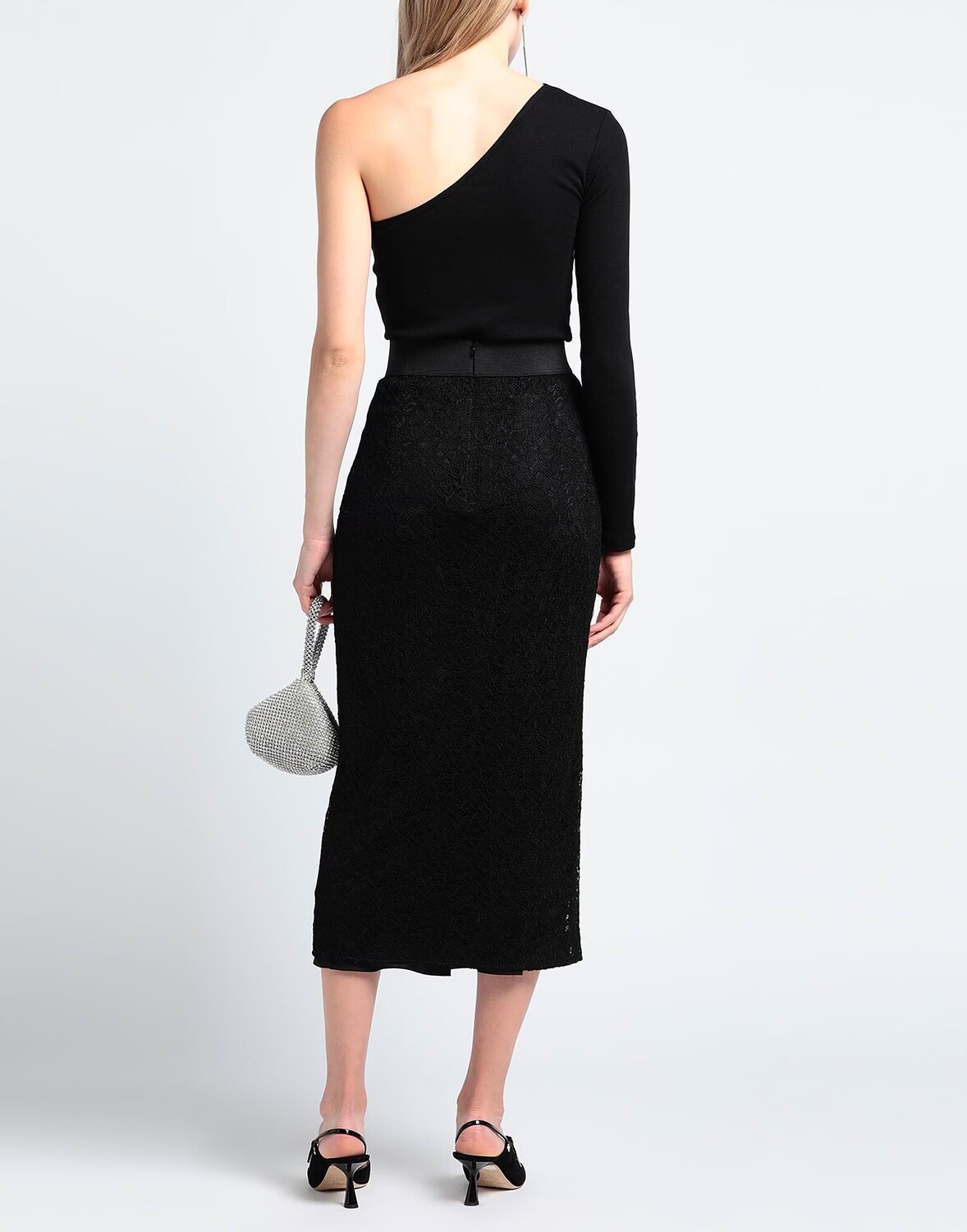 Кружево, контрастные аппликации, однотонное изделие с аппликациями, полностью на подкладке, застежка-молния, без карманов, стрейч, фасон-карандаш