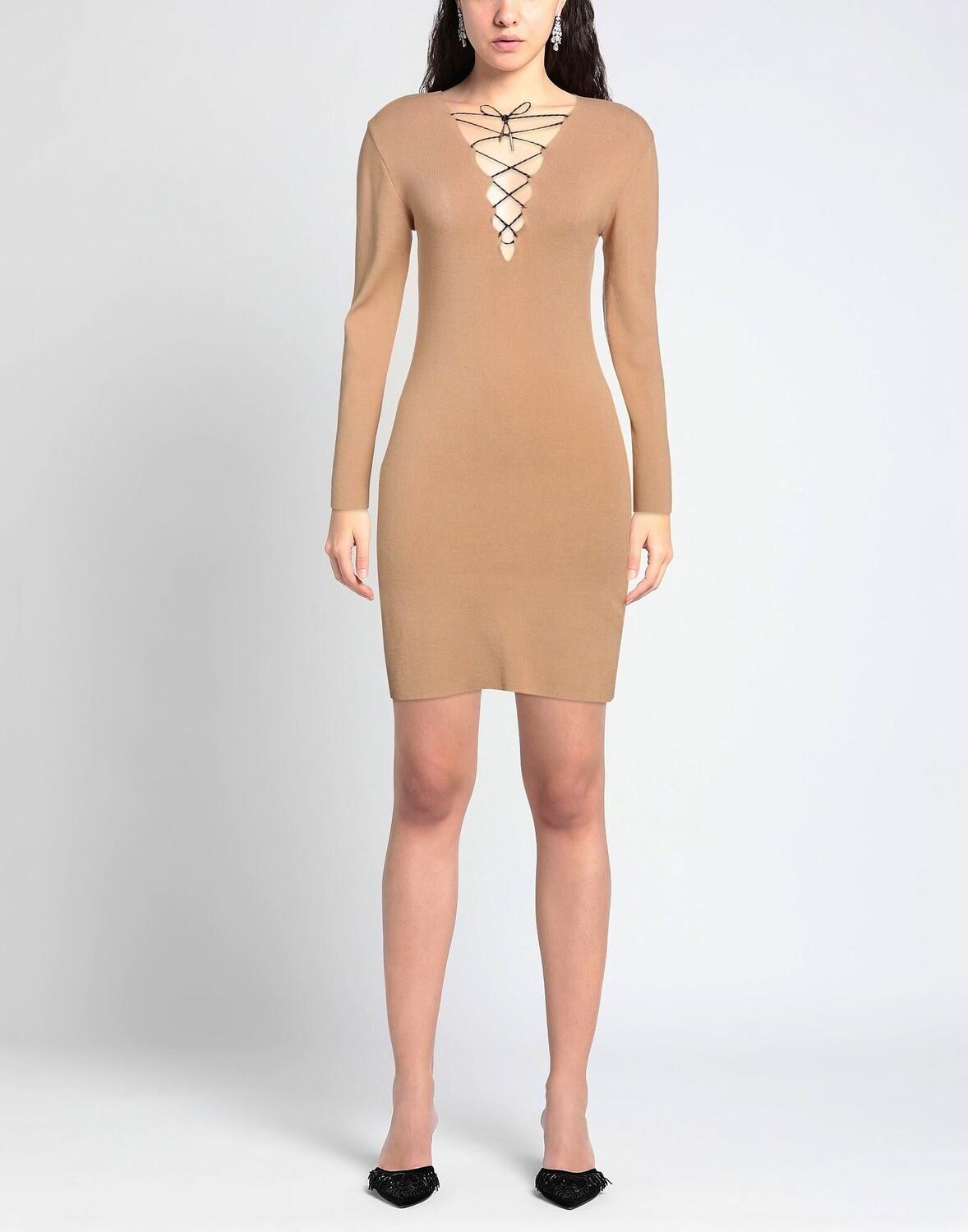 Трикотажное, легкий трикотаж, без аппликаций, однотонное, глубокий вырез, длинные рукава, без подкладки, без карманов, облегающее платье