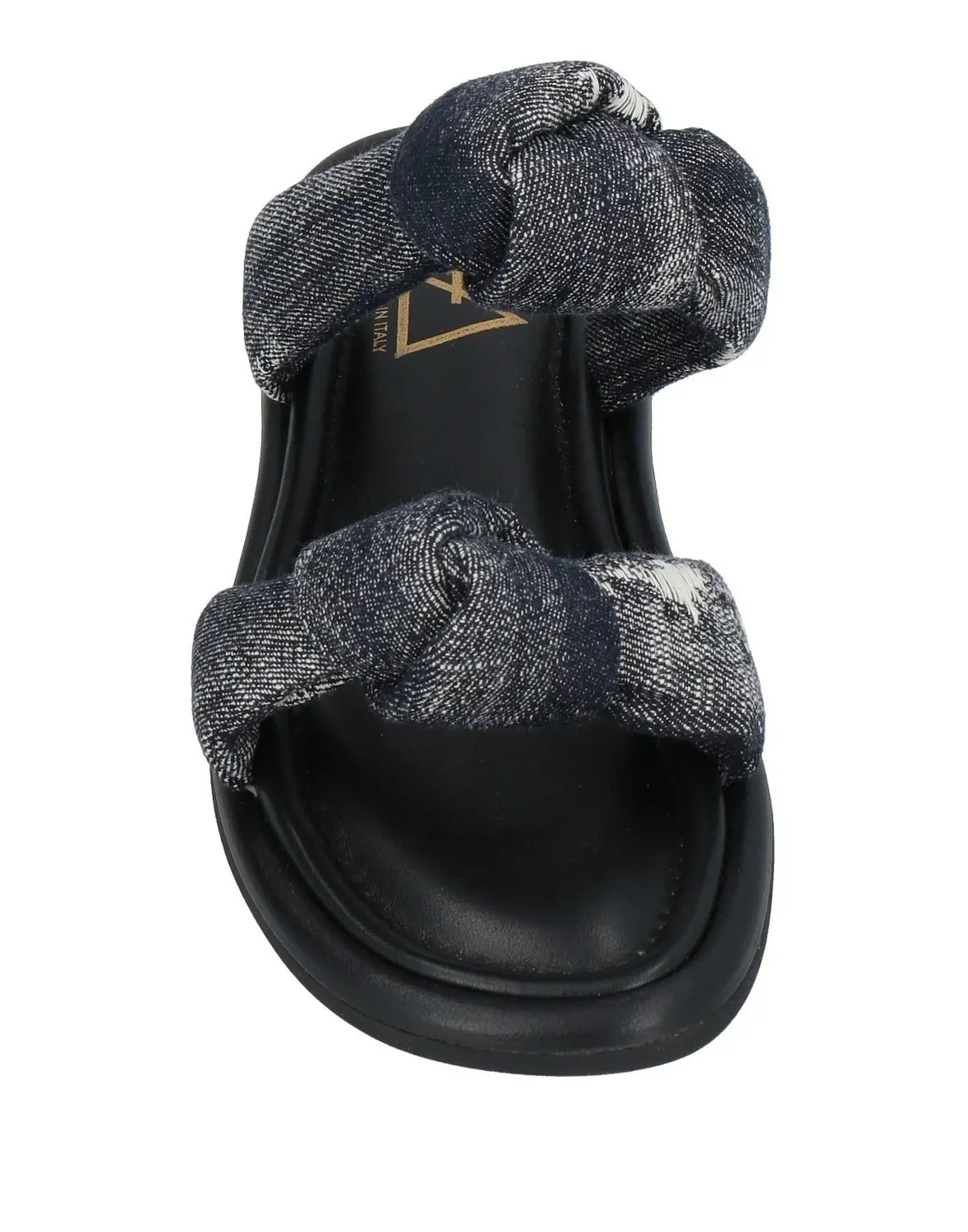 Джинсовая ткань, без аппликаций, одноцветное изделие, подкладка из кожи, скругленный носок, плоская подошва, с резиновыми накладками, содержит нетекстильные части животного происхождения, сандалии