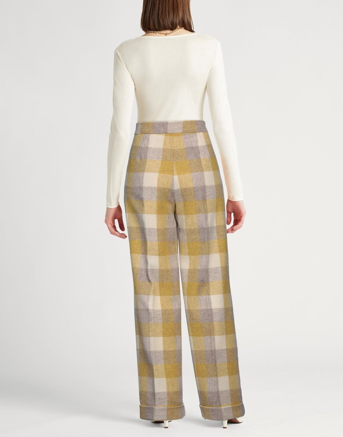 Широкие брюки, твид, без аппликаций, в клетку, завышенная талия, стандартный крой, застежка на крючки, застежка-молния, подвернутый низ, множество карманов, химчистка, нельзя отбеливать, нельзя сушить в стиральной машине