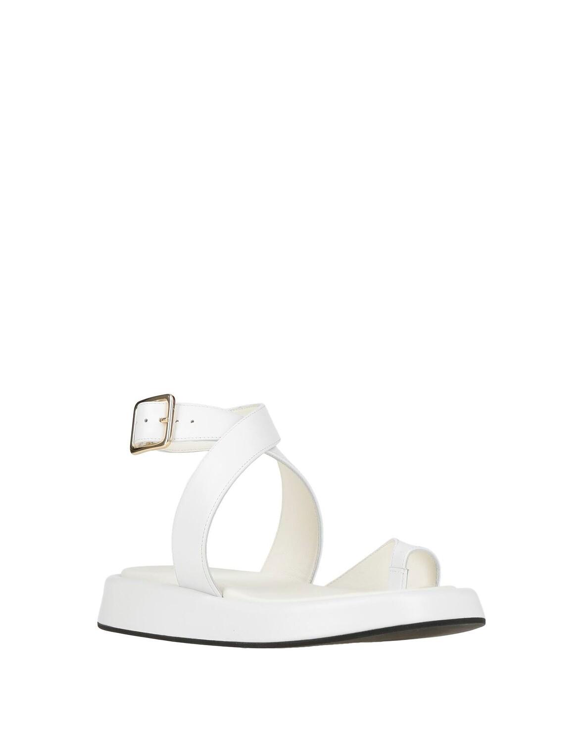Кожа, без аппликаций, одноцветное изделие, кожаная подкладка, ремешок на щиколотке с пряжкой, скругленный носок, каблук-танкетка, резиновая подошва, содержит нетекстильные части животного происхождения, босоножки с ремешком на носке