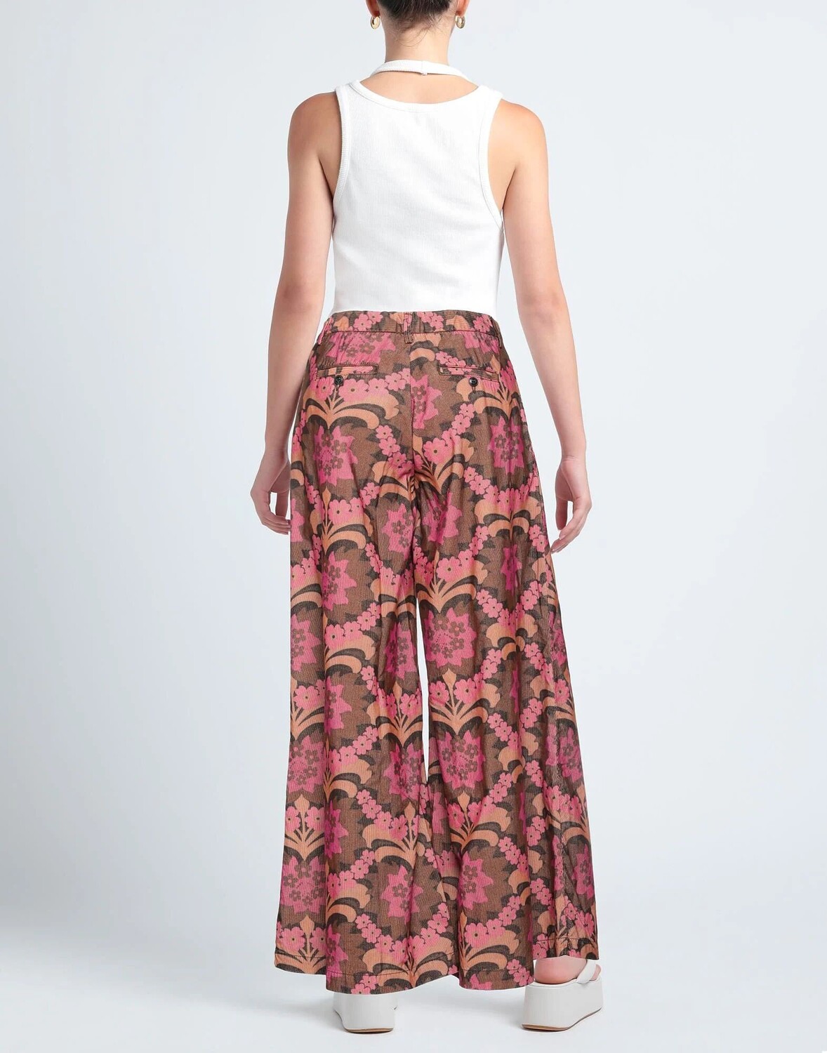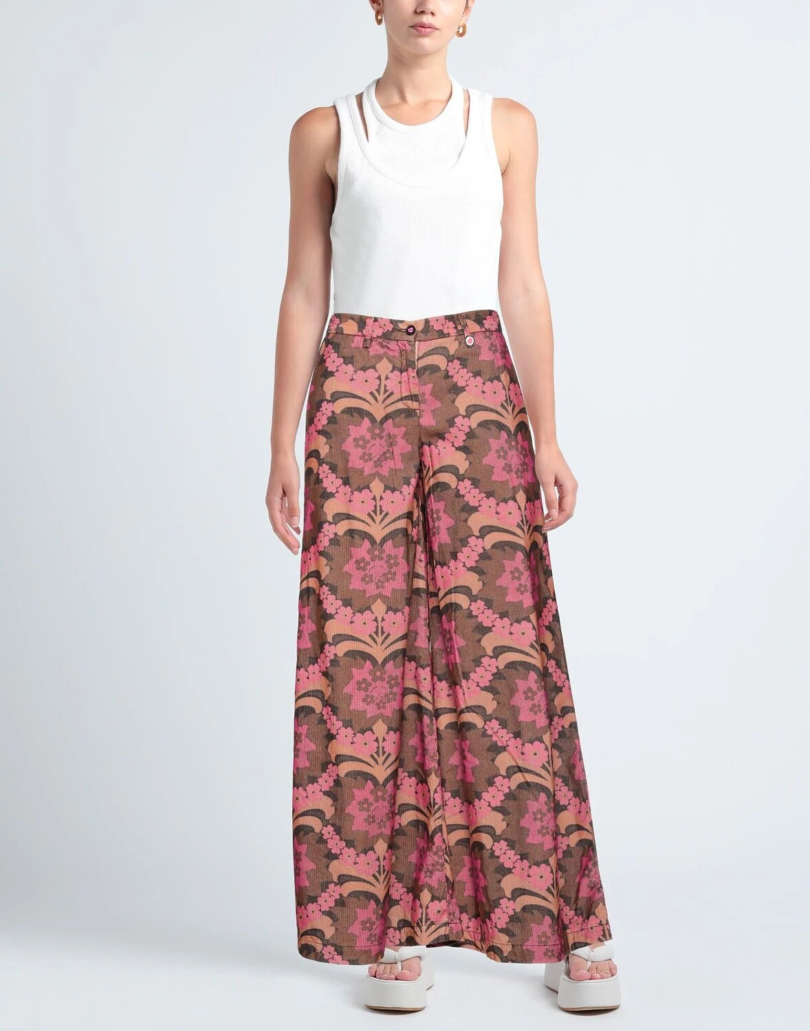 Брюки чинос, вельвет, в рубчик, без аппликаций, цветочный принт, расклешенные брючины, классический крой, застежка-молния, застежка на пуговицы, множество карманов