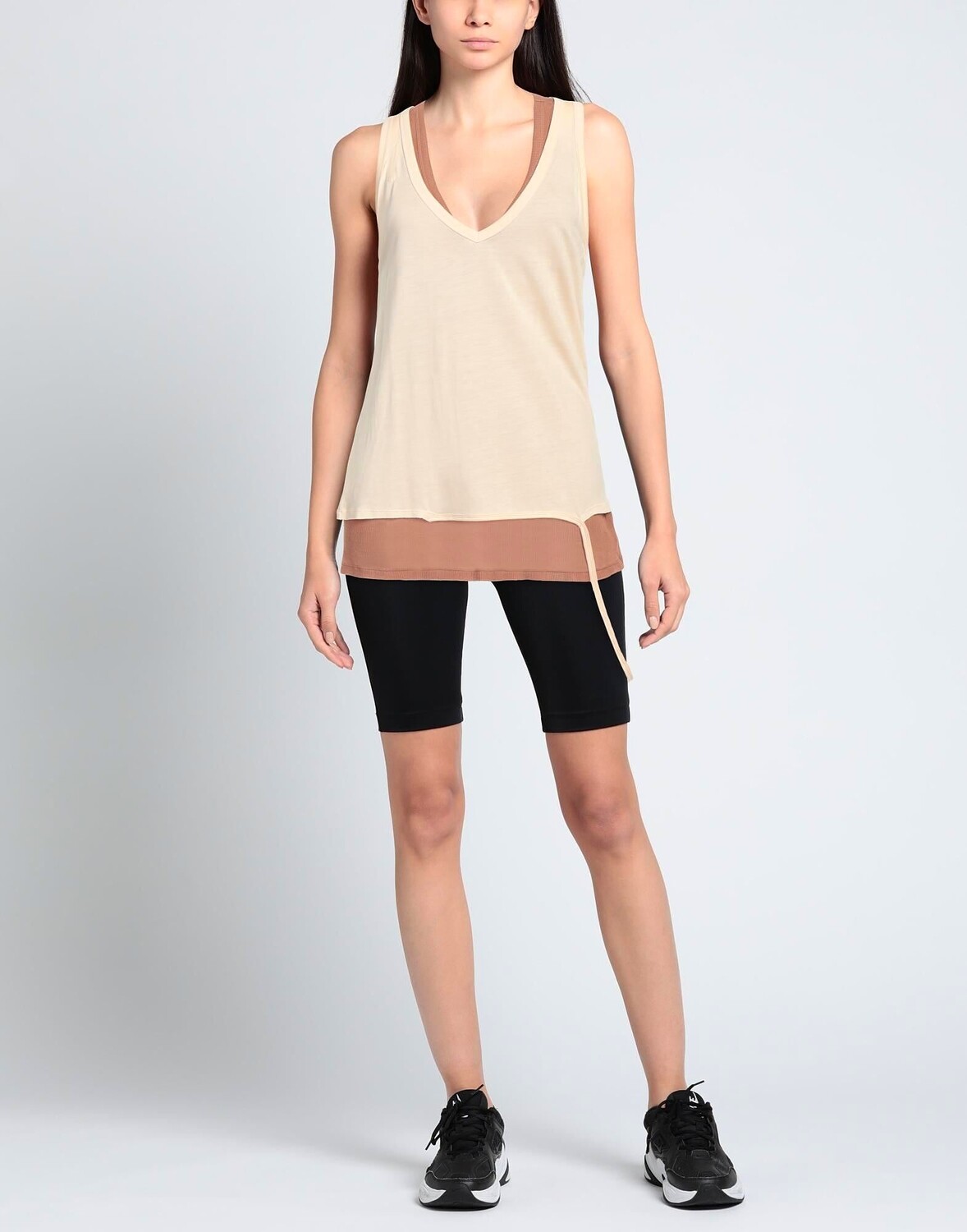 Трикотаж, без аппликаций, двухцветный, V-образный вырез, без рукавов, без карманов