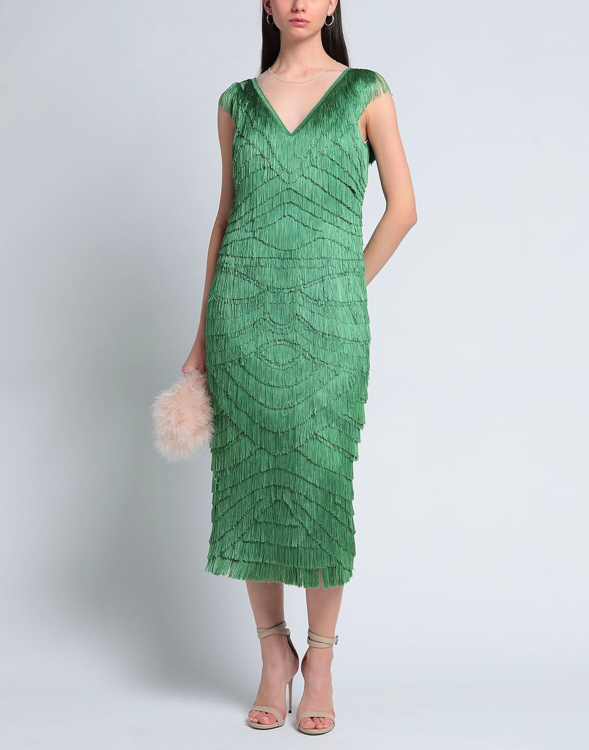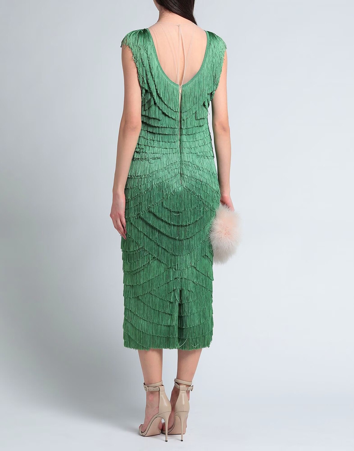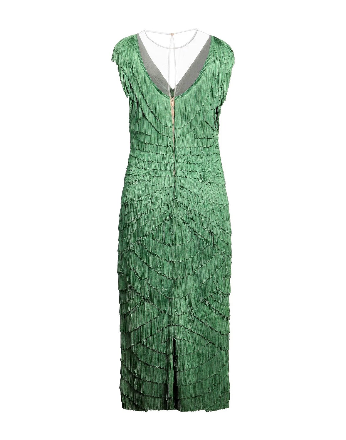 Тюль, бахрома, двухцветное изображение, круглый вырез, без рукавов, полностью на подкладке, застежка на кнопки, застежка-молния, без карманов, форма-карандаш