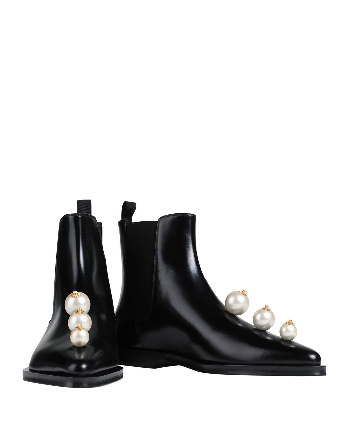 Кожа, стразы, бусины, одноцветное изделие с аппликациями, подкладка кожа, эластичные вставки, острый носок, без каблука, подошва кожаная, содержит нетекстильные части животного происхождения, ботинки челси