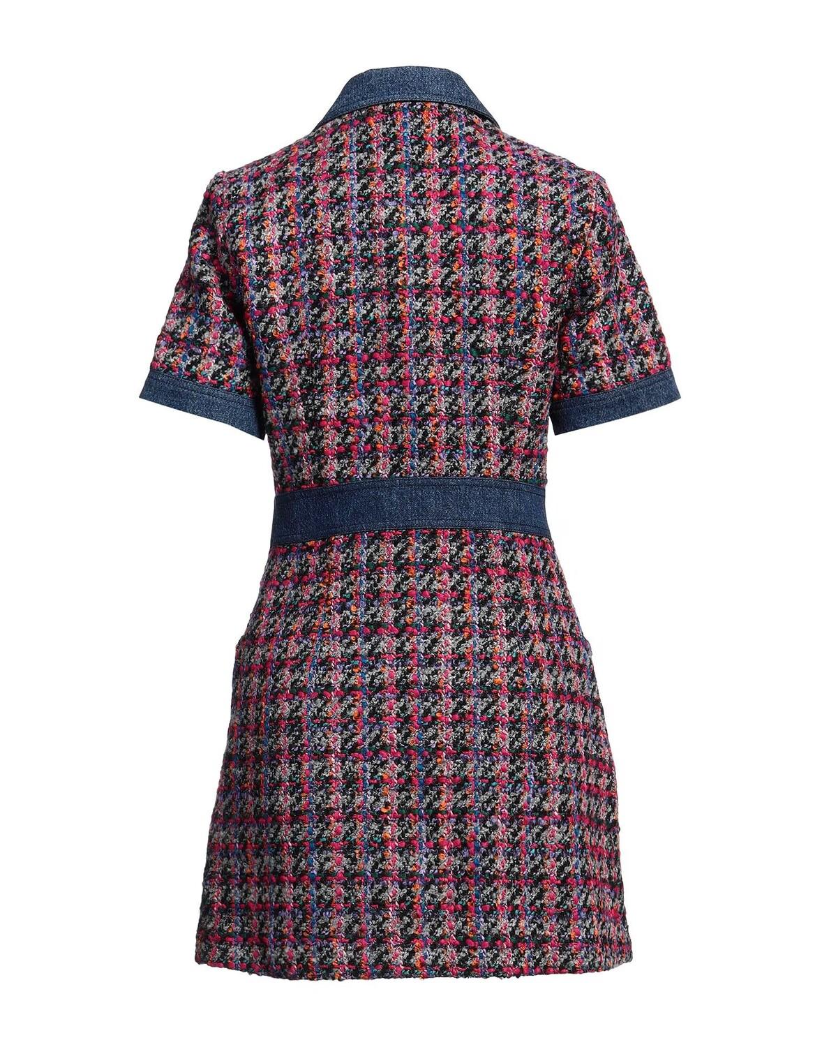 Платье-рубашка, букле, джинсовая ткань, без аппликаций, разноцветное, классический воротник, короткие рукава, внутри на подкладке, застежка-молния, кнопки, множество карманов, химчистка, нельзя отбеливать, нельзя сушить в стиральной машине
