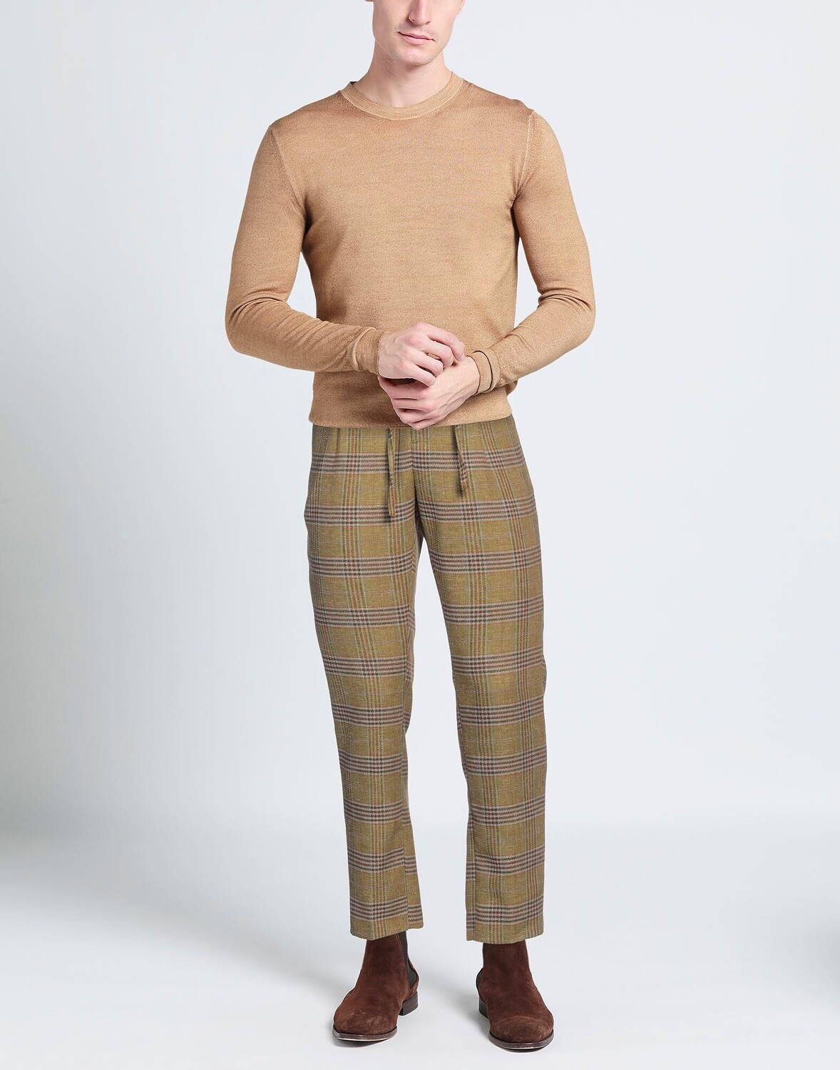 Ткань, без аппликаций, узор «тартан», завышенная талия, талия на кулиске, прямые брючины, стандартный крой, множество карманов, химчистка, нельзя отбеливать, нельзя сушить в стиральной машине, повседневные брюки