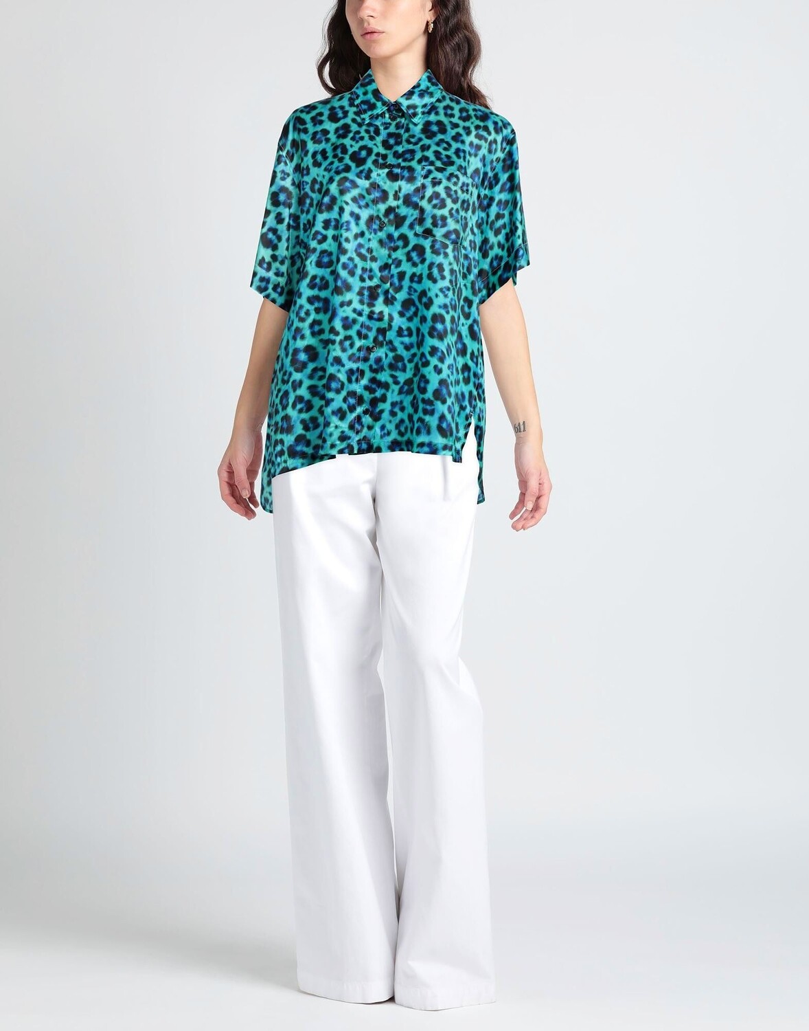 Атлас, без аппликаций, леопардовый принт, воротник классический, рукава короткие, застежка на пуговицы, один нагрудный карман, рубашка длинная.