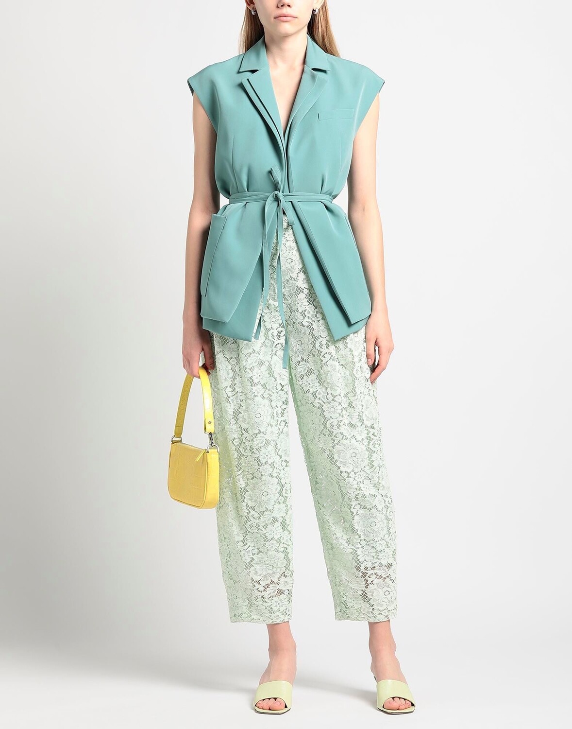 Кружево, вытачки, одноцветное изделие, завышенная талия, прямые брючины, стандартный крой, внутри на подкладке, застежка-молния, 1 пуговица, множество карманов, брюки