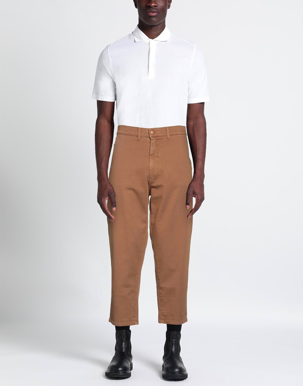 Габардин, логотип бренда, одноцветное изделие, завышенная талия, шлевки для ремня, зауженная брючина, стандартный крой, 1 пуговица, застежка-молния, множество карманов, стрейч, брюки чинос