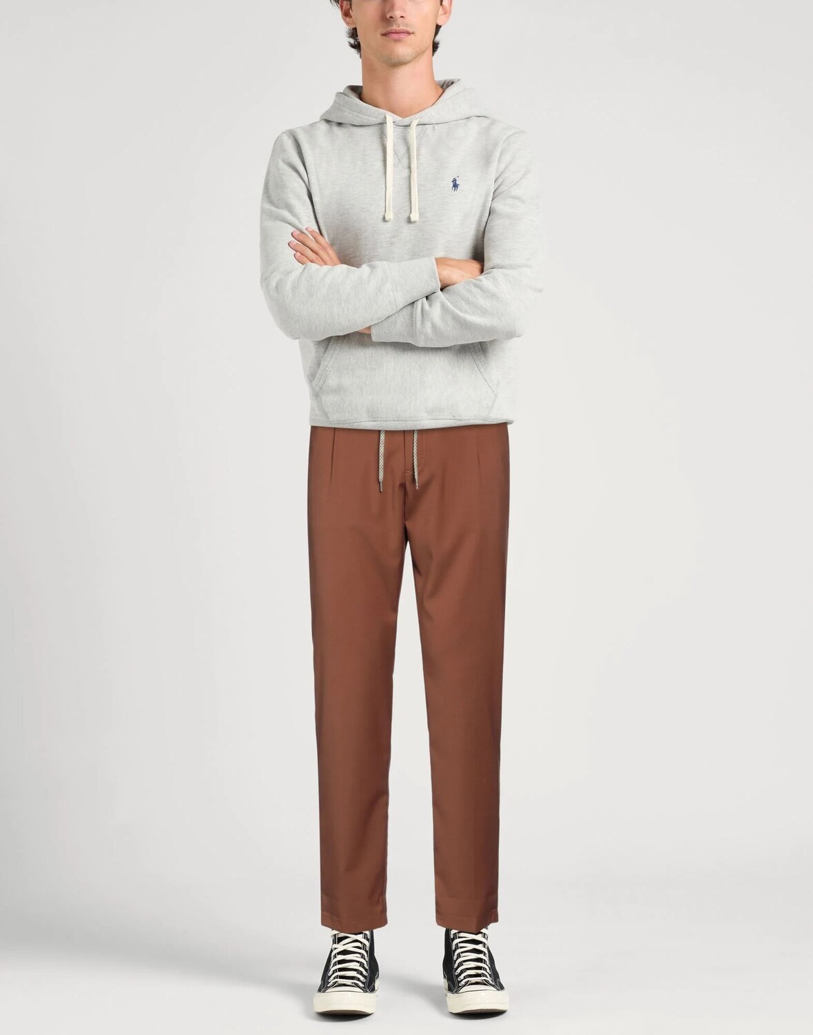 Ткань, без аппликаций, одноцветное изделие, средняя посадка, талия на кулиске, зауженная брючина, стандартный крой, застежка-молния, 1 пуговица, множество карманов, стрейч, химчистка, нельзя отбеливать, нельзя сушить в стиральной машине, брюки строгого кроя
