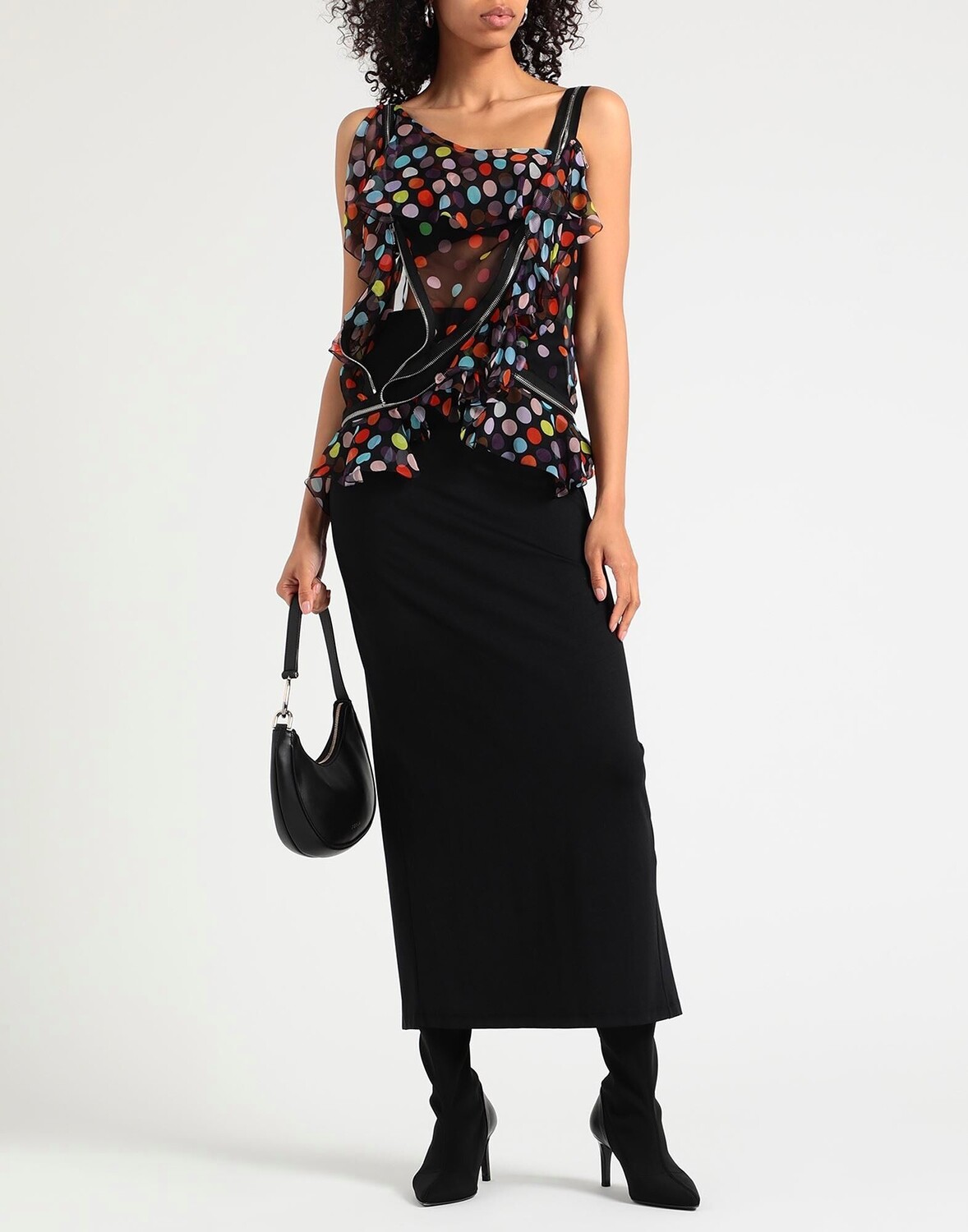 Шифон, украшение, горошек, овальный вырез, без рукавов, без подкладки, без карманов, химчистка, нельзя отбеливать, нельзя сушить в стиральной машине, топ со сборками