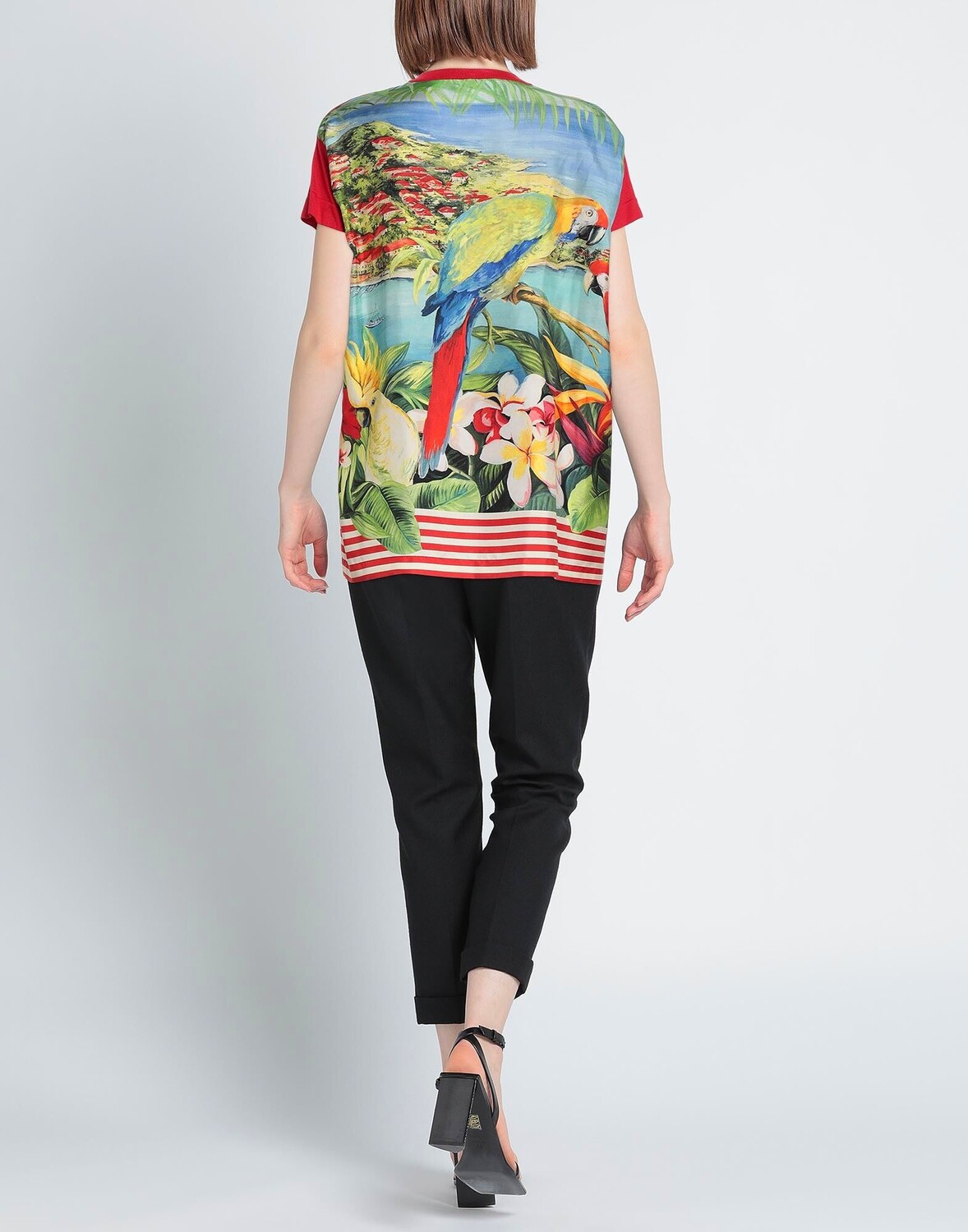 Трикотаж, атлас, легкая вязка, без аппликаций, гавайский дизайн, v-образный вырез, короткие рукава, без подкладки, без карманов