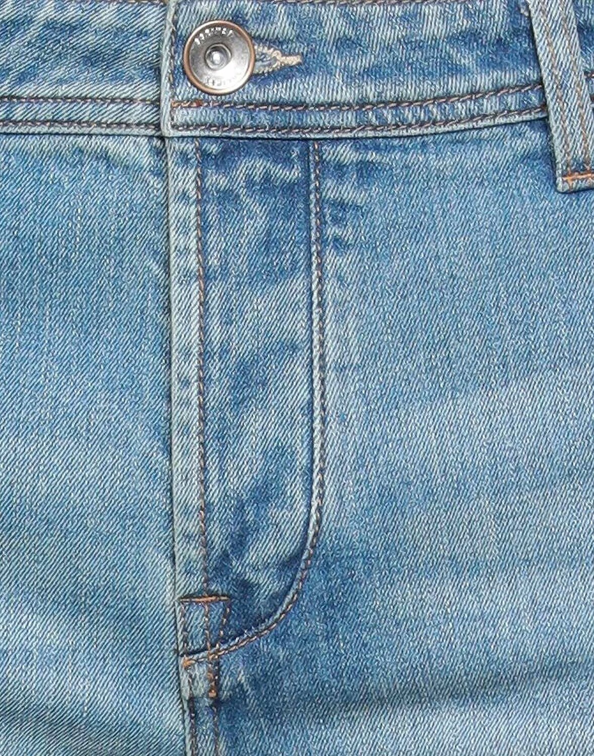 Деним, выцветший, без аппликаций, одноцветное изделие, средняя степень стирки, завышенная талия, шлевки для ремня, зауженные брючины, классический крой, потайные пуговицы, множество карманов, модель прямого кроя