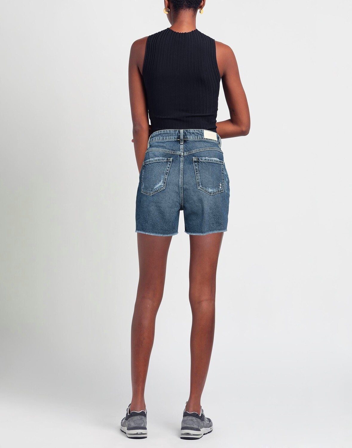 Джинсовая ткань, логотип бренда, одноцветное изделие, средняя степень стирки, завышенная талия, шлевки для ремня, стандартный крой, застежка-молния, 1 пуговица, шорты
