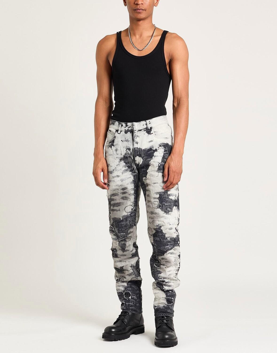 Деним, потертости, без аппликаций, двухцветный, цветная расцветка, завышенная талия, классический крой, застежка-молния, 1 пуговица, множество карманов, джинсы этой марки больших размеров, зауженные книзу