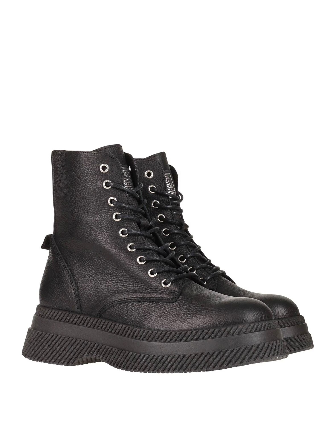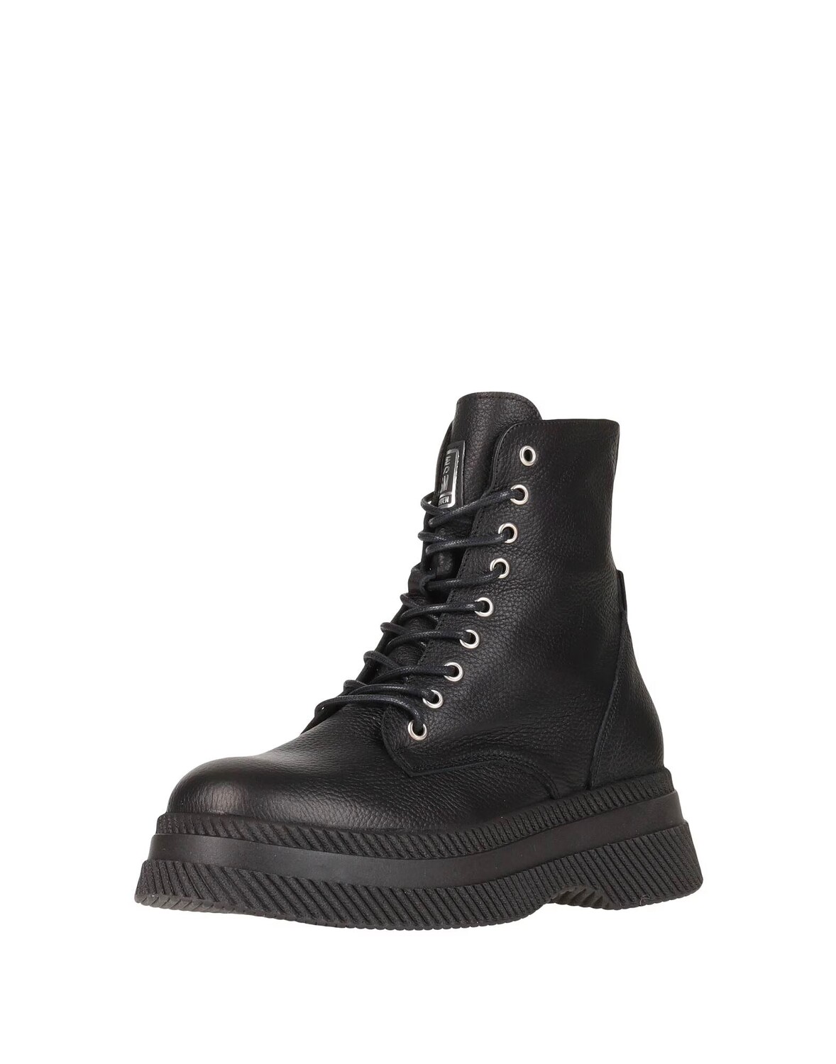 Кожа, фактурная кожа, логотип бренда, одноцветное изделие, внутри на подкладке, застежка-молния, шнуровка, скругленный носок, без каблука, плоская платформа, содержит нетекстильные части животного происхождения, использованная кожа произведена на ответственном производстве, сертифицированном рабочей группой по кожевенному делу., массивный сапоги