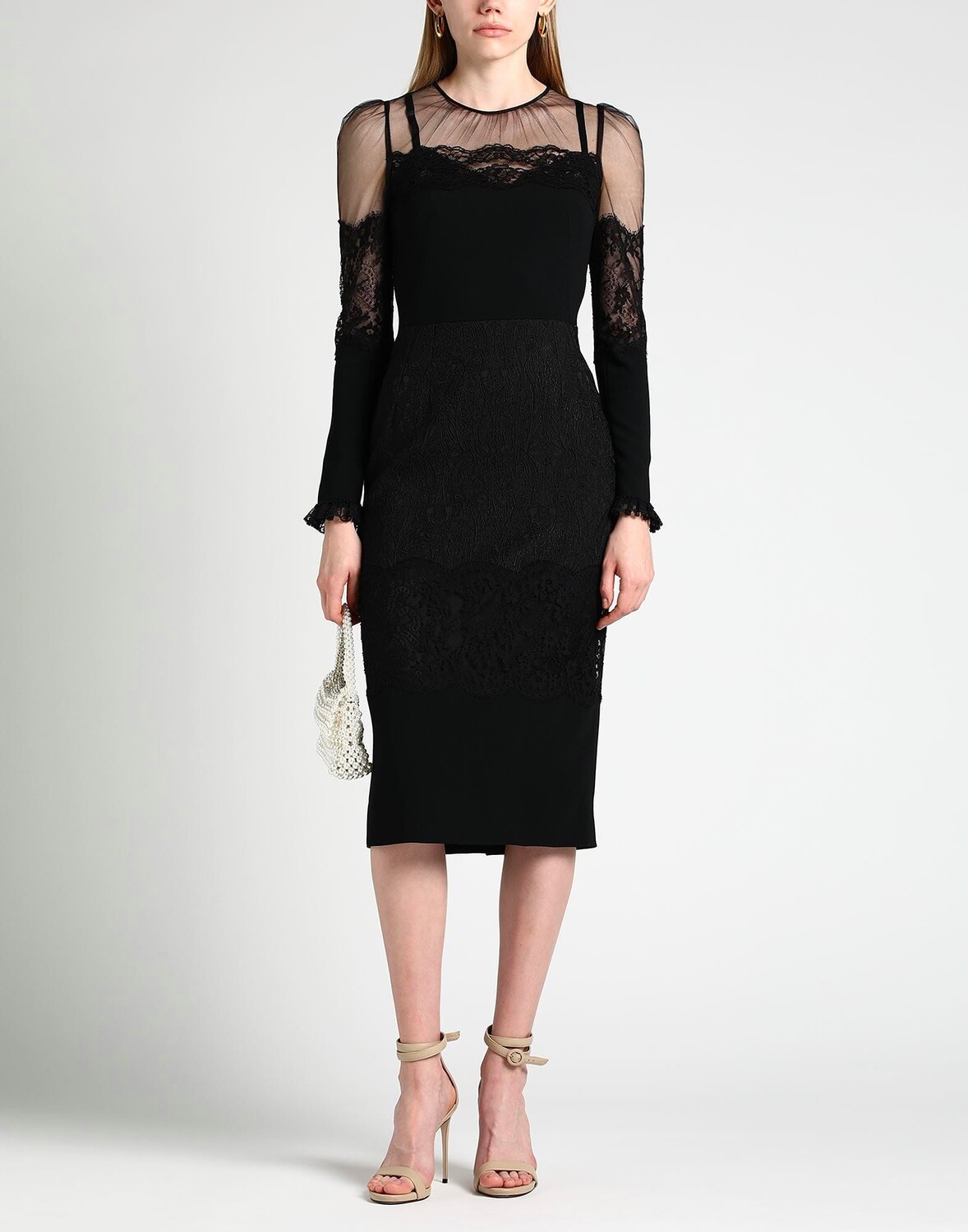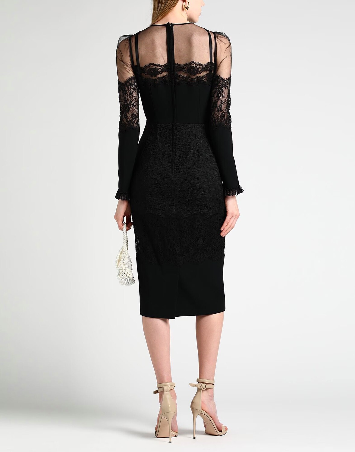 Жаккард, кружево, без аппликаций, одноцветное изделие, круглый вырез, длинные рукава, скользящее по фигуре, застежка-молния, без карманов, стрейч, химчистка, нельзя сушить в стиральной машине, не отбеливать, облегающее платье