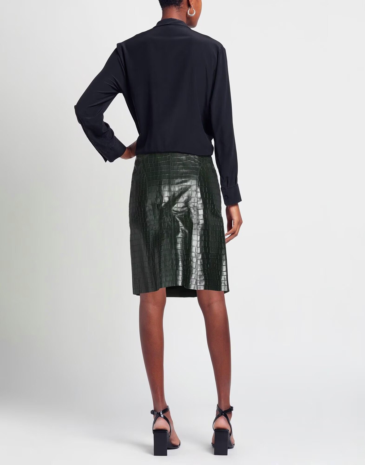 Кожа, без аппликаций, одноцветное изделие, на подкладке, кнопки, без карманов, не подлежит химчистке, не отбеливать, не сушить в стиральной машине, содержит нетекстильные части животного происхождения, большой габарит, юбка-карандаш