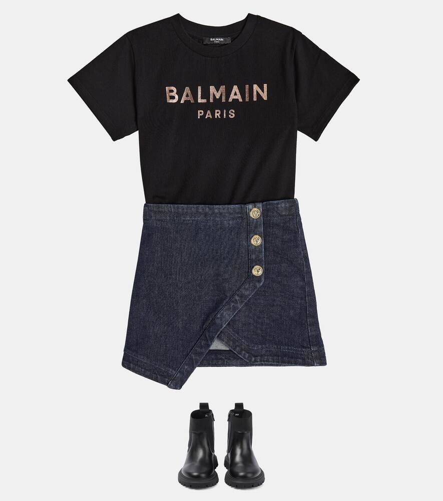 Футболка из хлопкового джерси с логотипом Balmain, черный