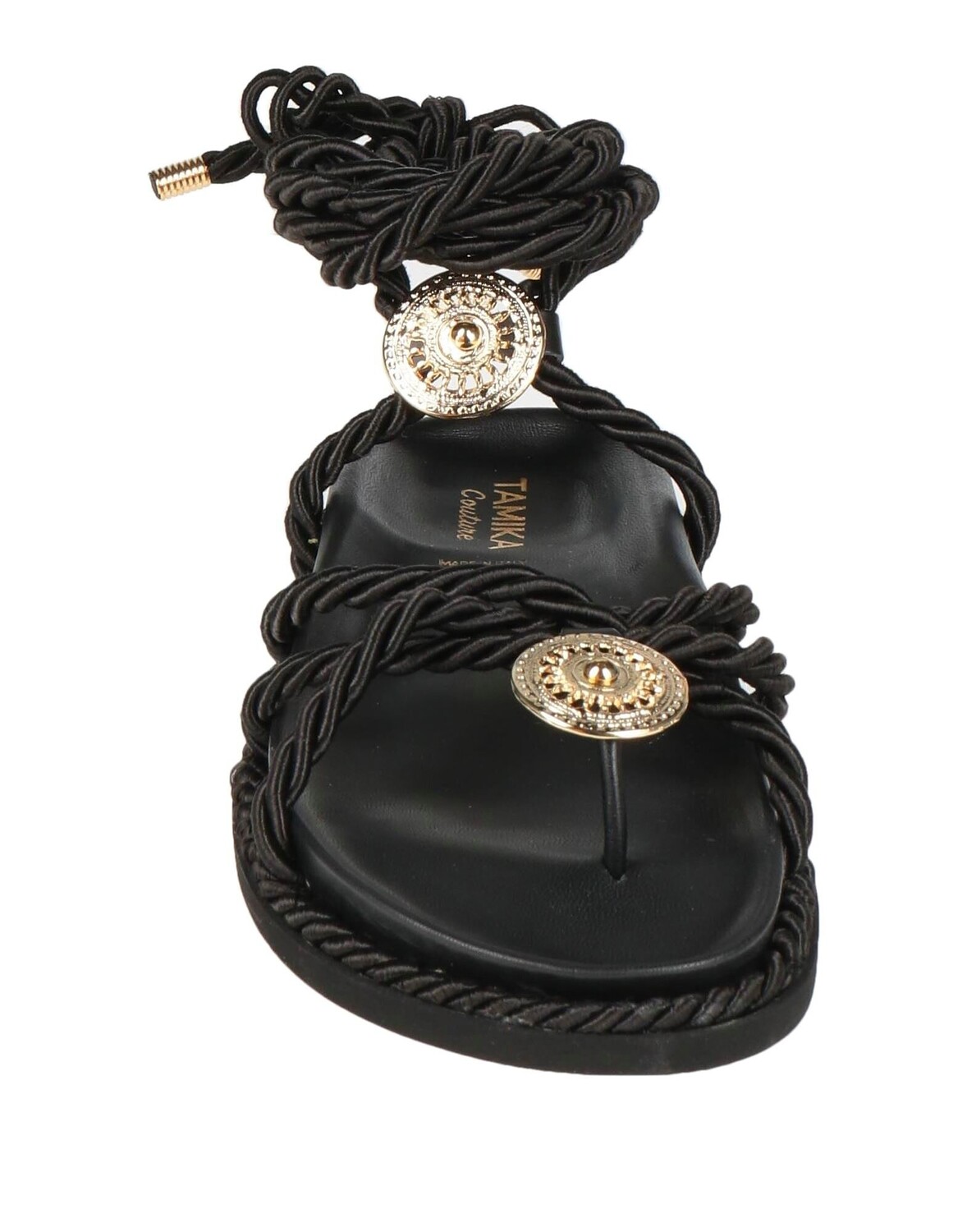 Атлас, кожа, металлические аппликации, одноцветное изделие с аппликациями, подкладка из кожи, застежка на бретели, скругленный носок, без каблука, резиновая подошва, содержит нетекстильные части животного происхождения, босоножки со шнуровкой