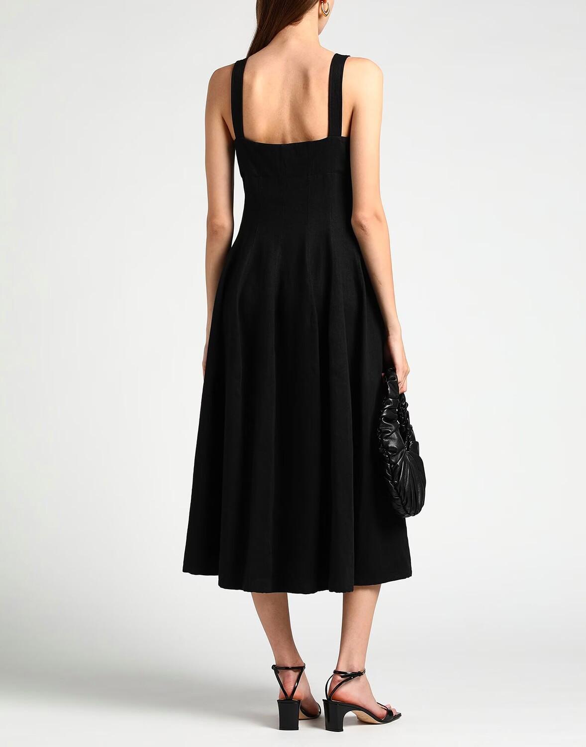 Габардин, с вышивкой, одноцветное изделие, квадратный вырез, без рукавов, без подкладки, застежка на пуговицы, без карманов, химчистка, нельзя отбеливать, нельзя сушить в стиральной машине, предназначено для свободного кроя, платье-клеш