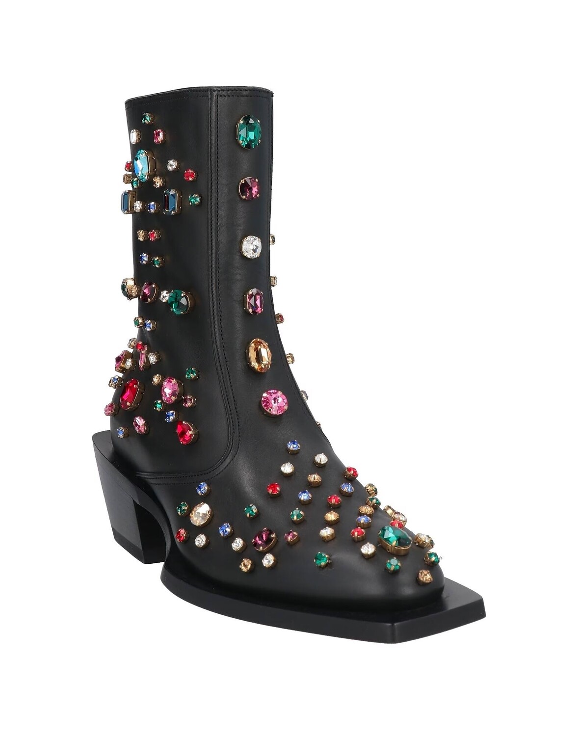 Кожа, стразы, одноцветное изделие с аппликациями, подкладка из кожи, застежка-молния, квадратный носок, квадратный каблук, кожаная подошва, содержит нетекстильные части животного происхождения, ботильоны в стиле вестерн
