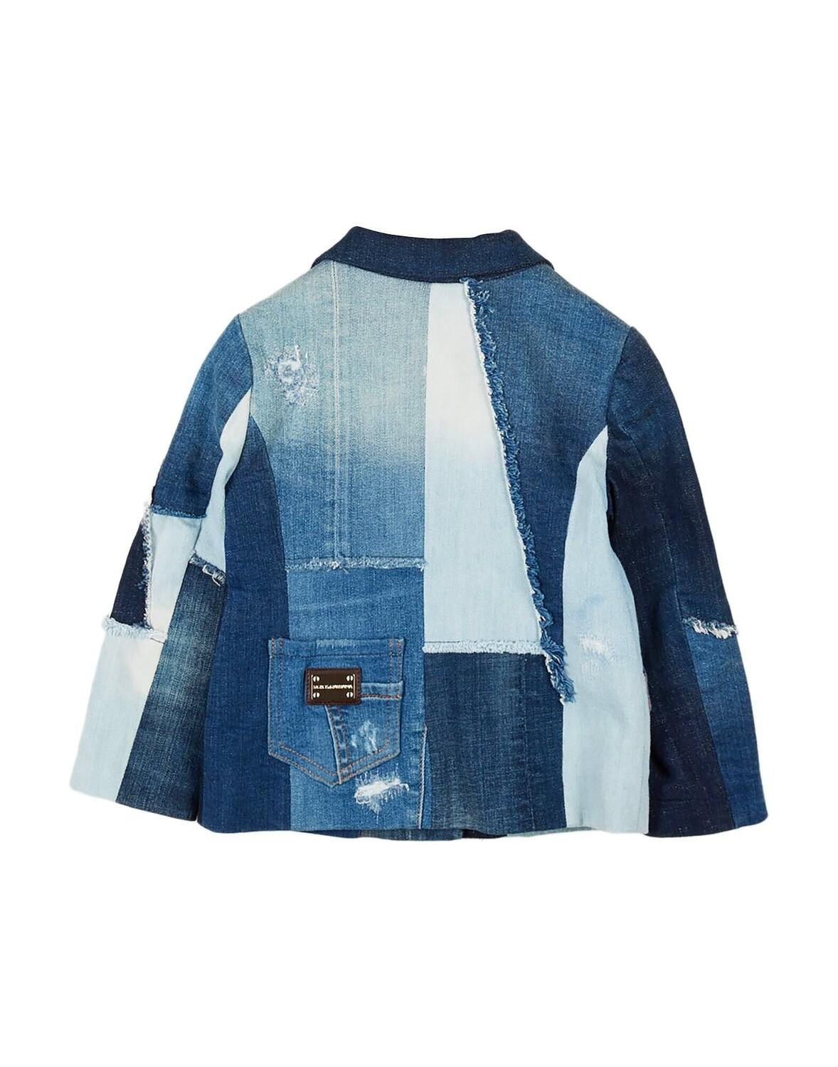 Джинсовая ткань, эффект потертости, логотип бренда, пэчворк, цветная стирка, воротник с лацканами, однобортный, длинные рукава, на подкладке, пуговицы, множество карманов, карман с клапаном, нельзя стирать, можно химчистка, нельзя отбеливать, нельзя сушить в стиральной машине , гладить при температуре не выше 110°C, однобортный пиджак