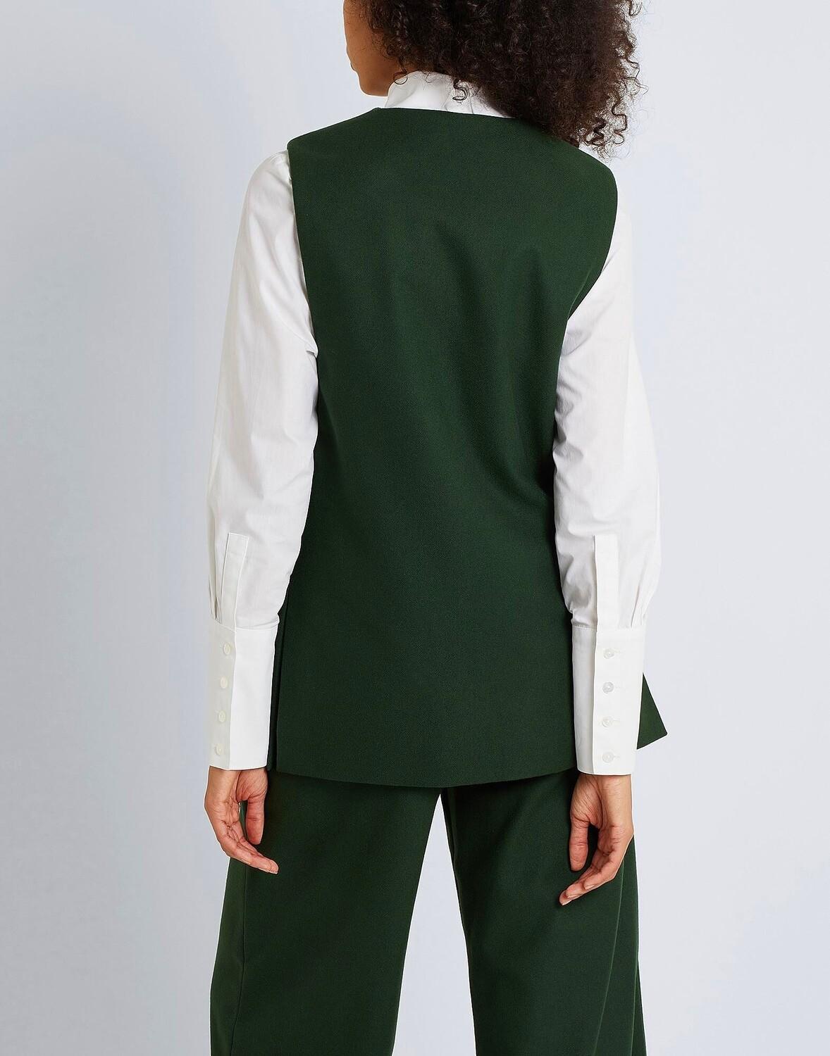 Жилет из 100% шерсти Deadstock, сертифицированный ReLiveTex, на подкладке из 100% чистого органического шелка и застегивается на биоразлагаемые пуговицы из красной свеклы. Дизайн вдохновлен практичной садовой одеждой, классическими костюмами и зеленью Highgrove Gardens. Этот предмет одежды является частью коллекции The Modern Artisan, созданной в сотрудничестве с The Prince's Foundation, благотворительной организацией, в которую будет передано 50% покупной цены. Этот продукт оснащен цифровым идентификатором, в котором указана его история, материалы, из которых он изготовлен, и мастера, которые его спроектировали и изготовили, а также рекомендации по уходу и ремонту, которые позволят вам сохранить это изделие на долгие годы. Мы работали с Carbonsink, чтобы минимизировать, рассчитать и компенсировать углеродный след этой одежды.