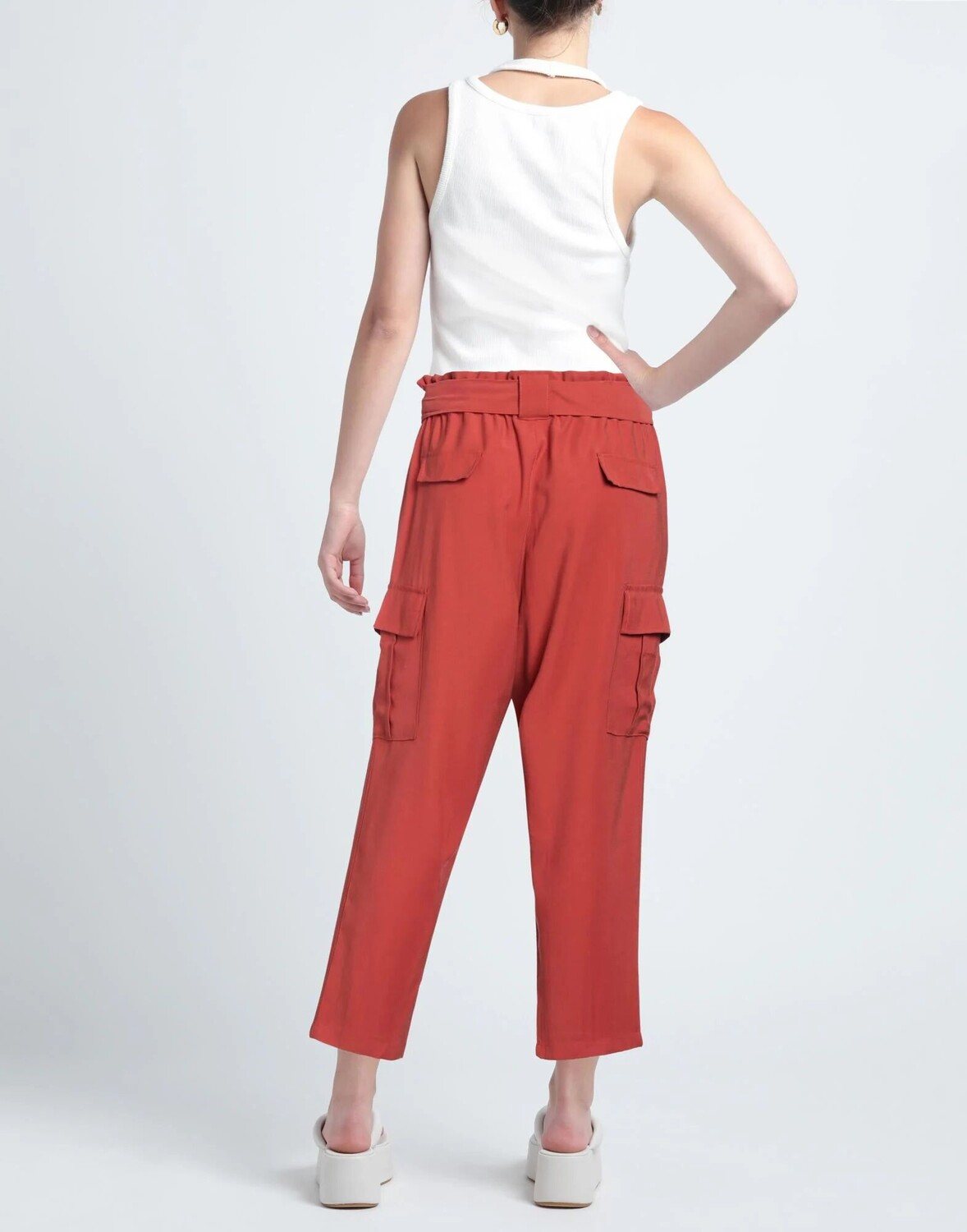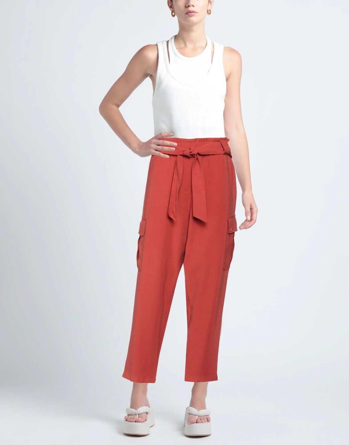 Полотняное переплетение, логотип бренда, пояс, одноцветное изделие, завышенная талия, зауженные брючины, удобная посадка, множество карманов, брюки, маленький размер
