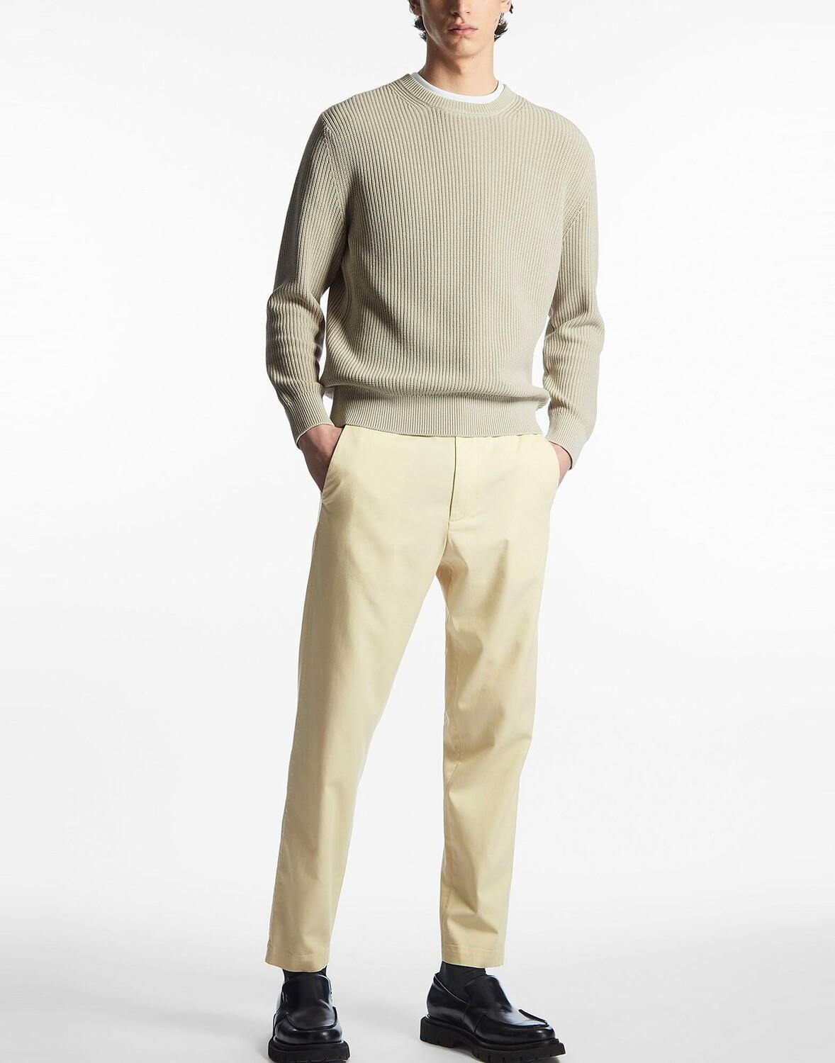 Саржа, без аппликаций, одноцветное изделие, завышенная талия, прямые брючины, застежка на крючки, застежка-молния, множество карманов, брюки чинос