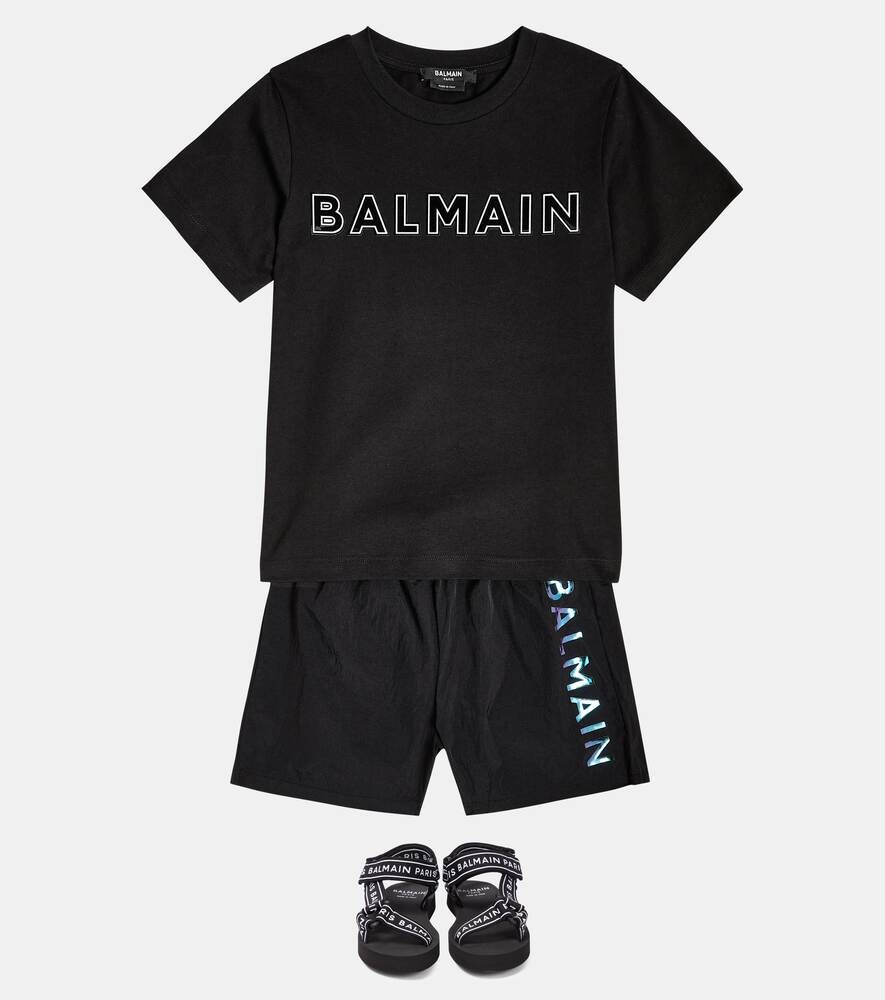 Хлопковая футболка с логотипом Balmain, черный