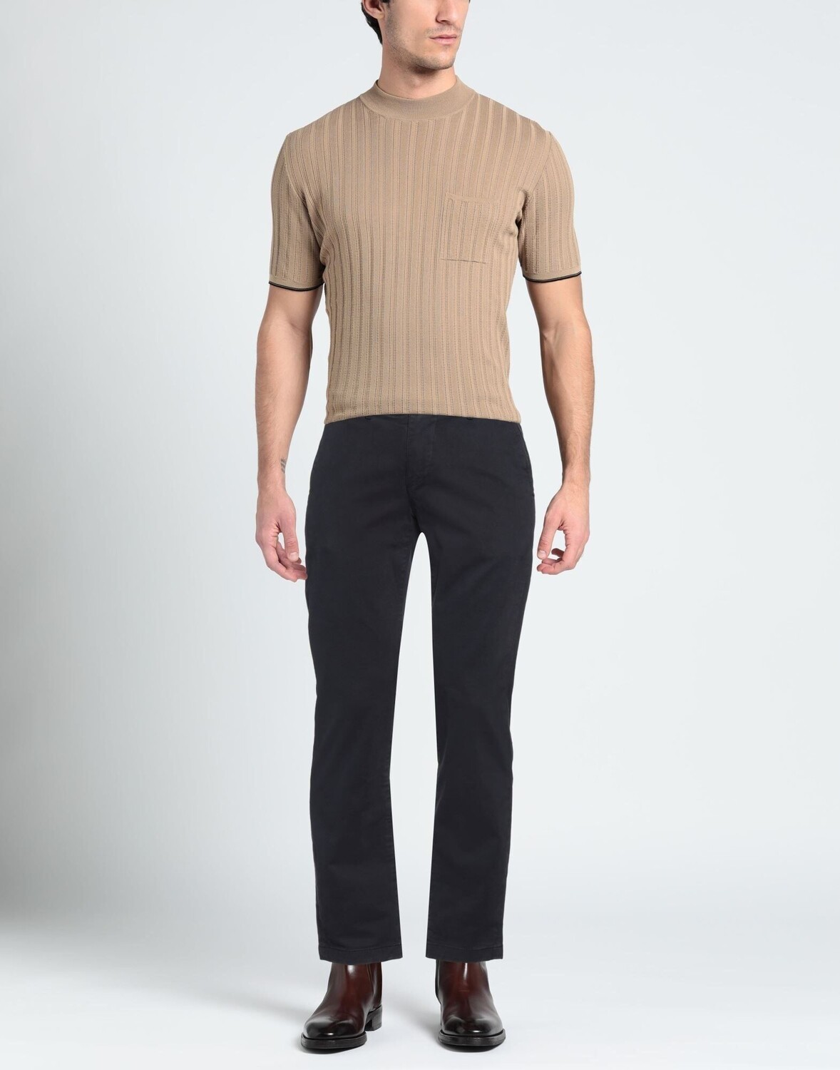 Габардин, логотип бренда, одноцветное изделие, заниженная талия, зауженные брючины, приталенный крой, застежка-молния, пуговицы, множество карманов, эластичный, машинная стирка или химчистка, нельзя отбеливать, нельзя сушить в стиральной машине, брюки-чиносы