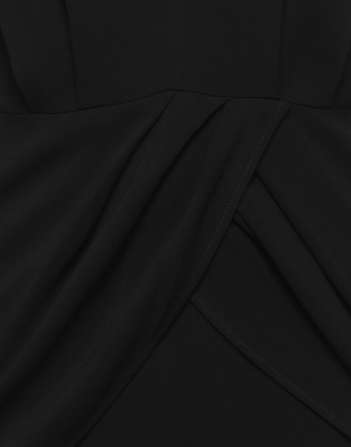 Креп, без аппликаций, одноцветное изделие, глубокий вырез горловины, длинные рукава, на подкладке, застежка-молния, без карманов, расклешенное платье